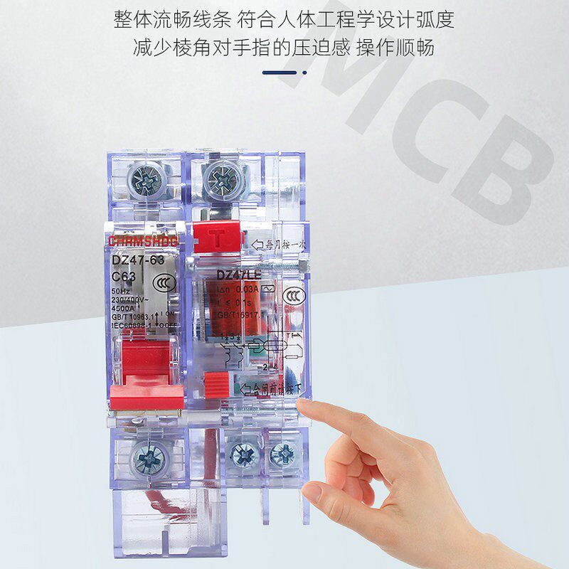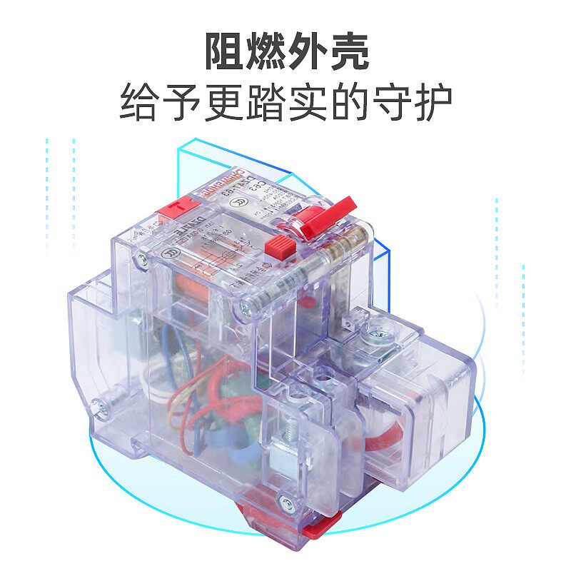 DZ47LE透明款小型漏电保护断路器是一款家用安全配电设备,适用于1P、2P、3P多种规格,额定电流达63A,广泛用于家庭、办公室等场所的线路保护。其透明外壳设计便于直观观察内部结构与工作状态,提升维护便捷性。该断路器具备过载、短路及漏电保护功能,当线路发生漏电(≥30mA)时能迅速切断电源,有效防止触电和电气火灾。体积小巧,安装简便,符合国家标准,安全可靠。适用于照明、插座、空调等回路的独立保护,是现代家庭配电系统中不可或缺的安全保障装置,兼顾实用性与美观性。