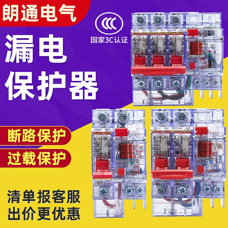 淘D牌漏电保护器家用空气开关断路器1P2P4P三相漏电DZ47LE-63/3P+N