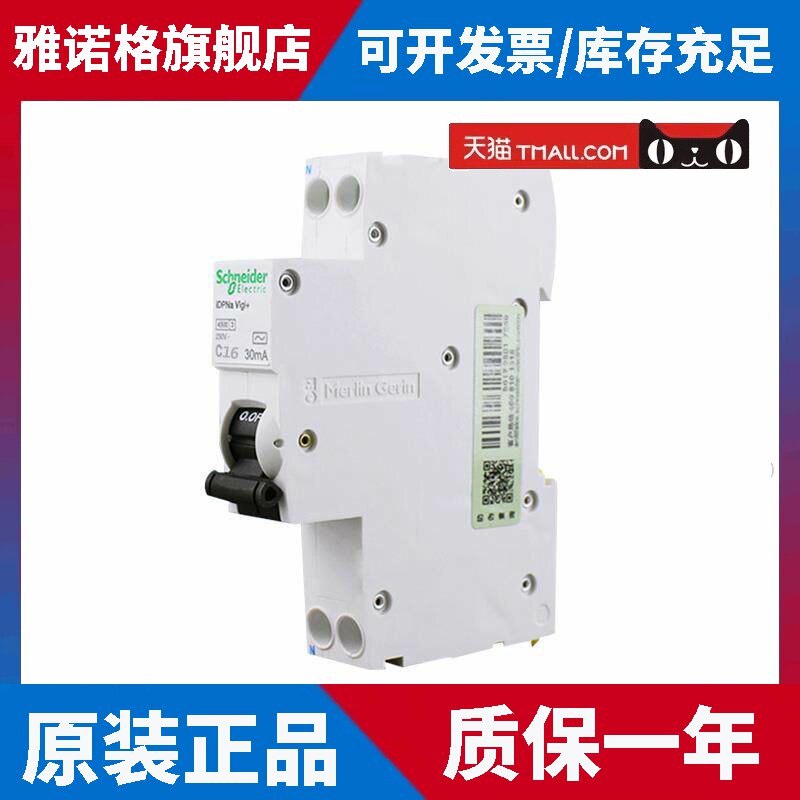 天猫原装施耐德A9断路器空气开关iDPNa16A单片超薄带漏电保护A9D91616