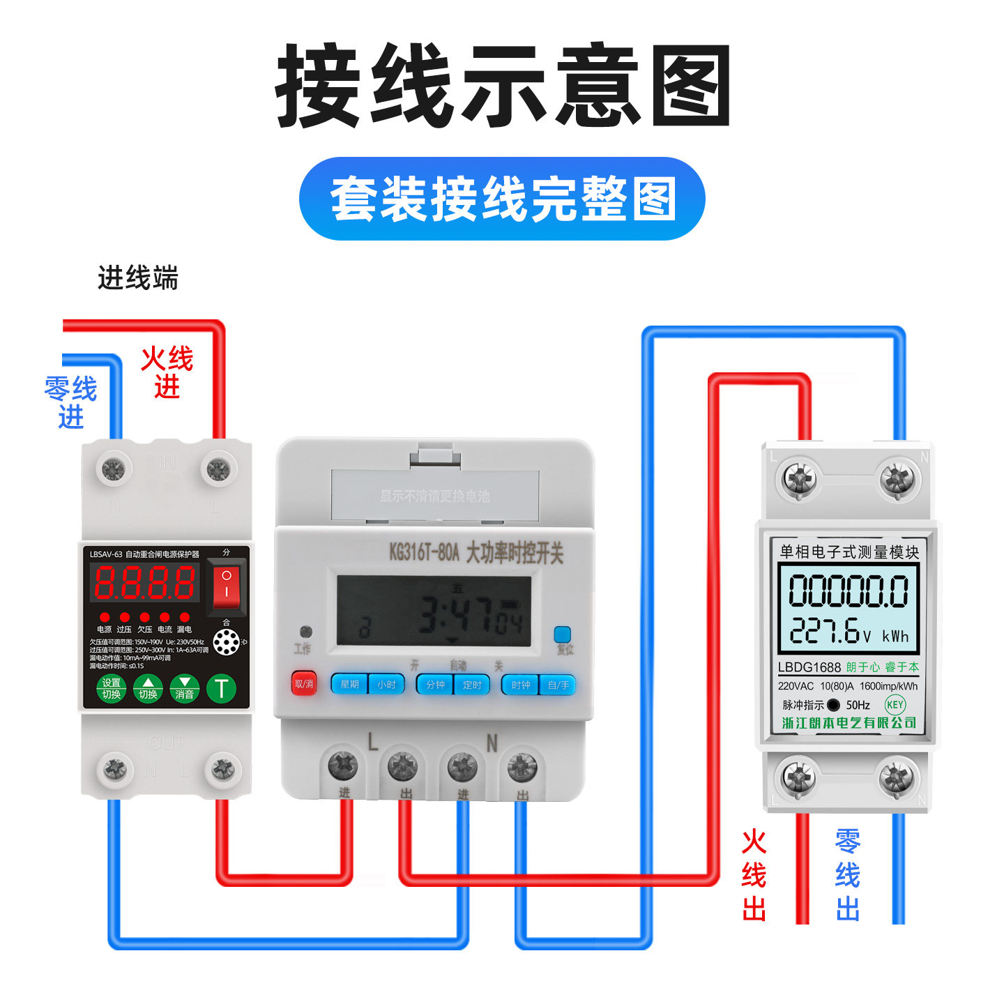 天炬为数显计量导轨式智能电表功率计漏电保护器空气开关断路器包邮