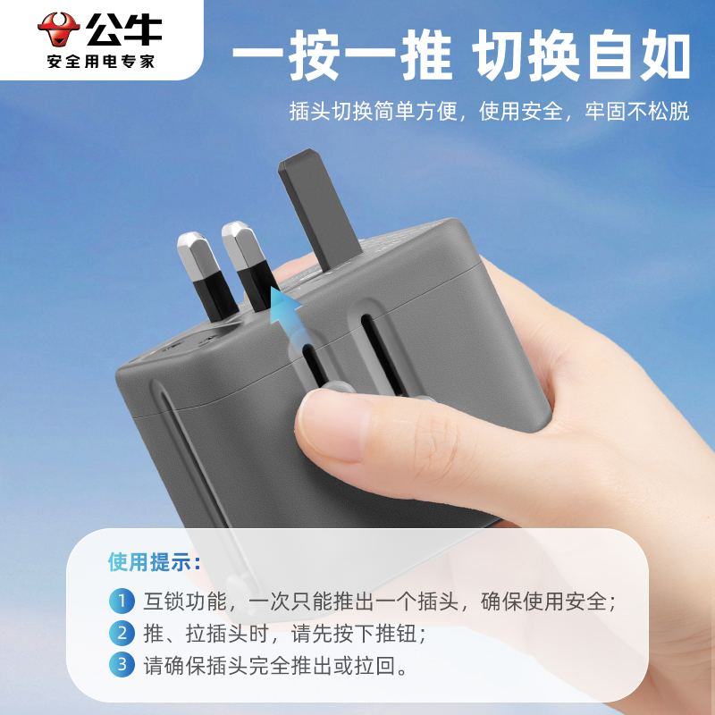 天猫公牛多国通用转换插头美英标泰国德欧标国际插座转换器澳洲转接头