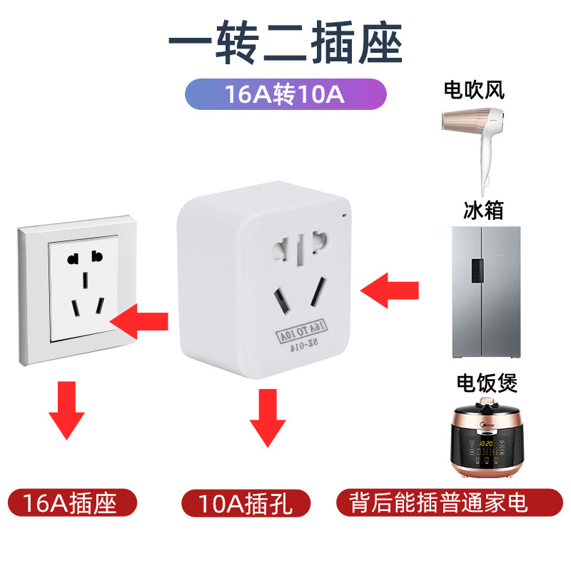 淘宝16安三孔大功率10a转16a空调插座转换器专用一转二转换插头家用