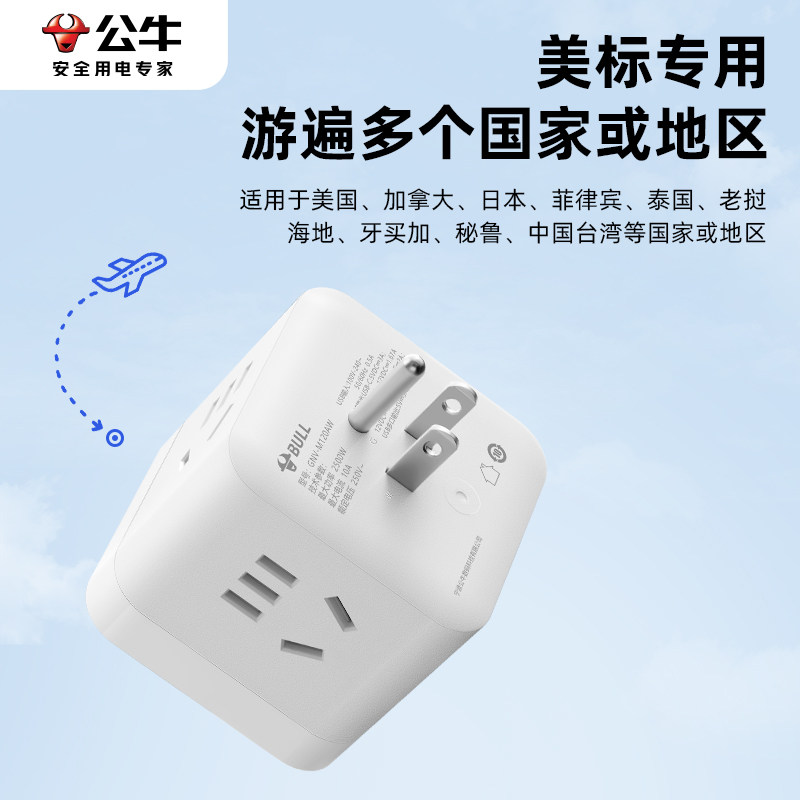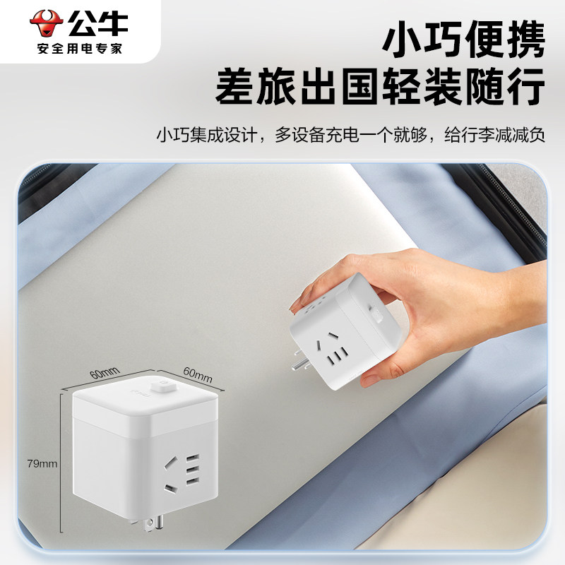 天猫公牛美标转换插头迷你总控魔方插座出国旅行一转多拓展无线转换器