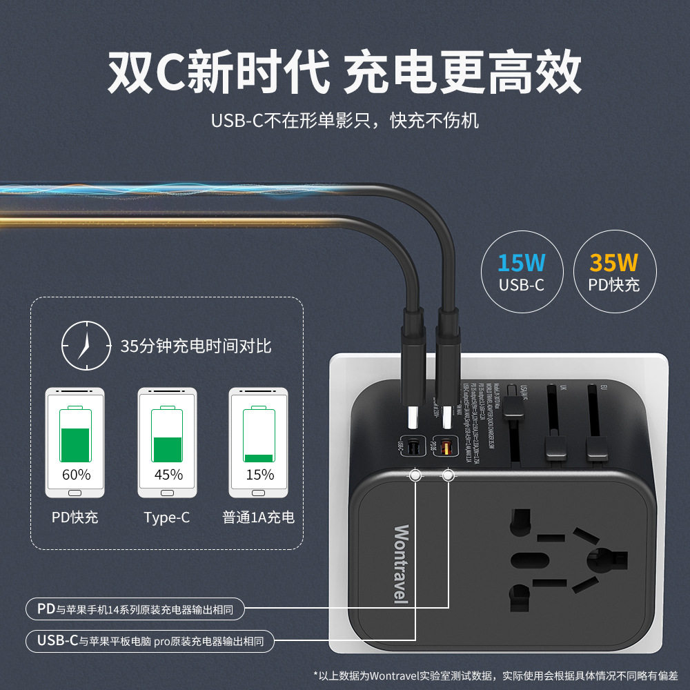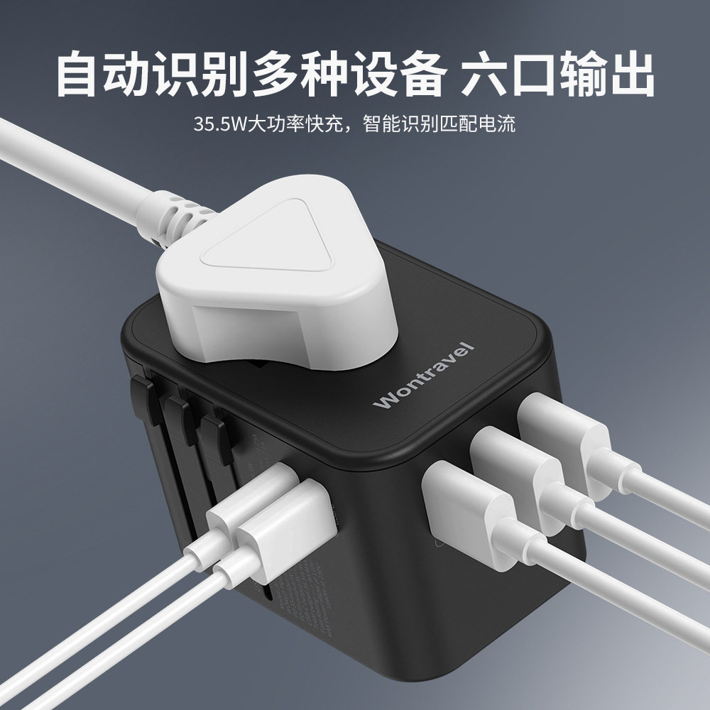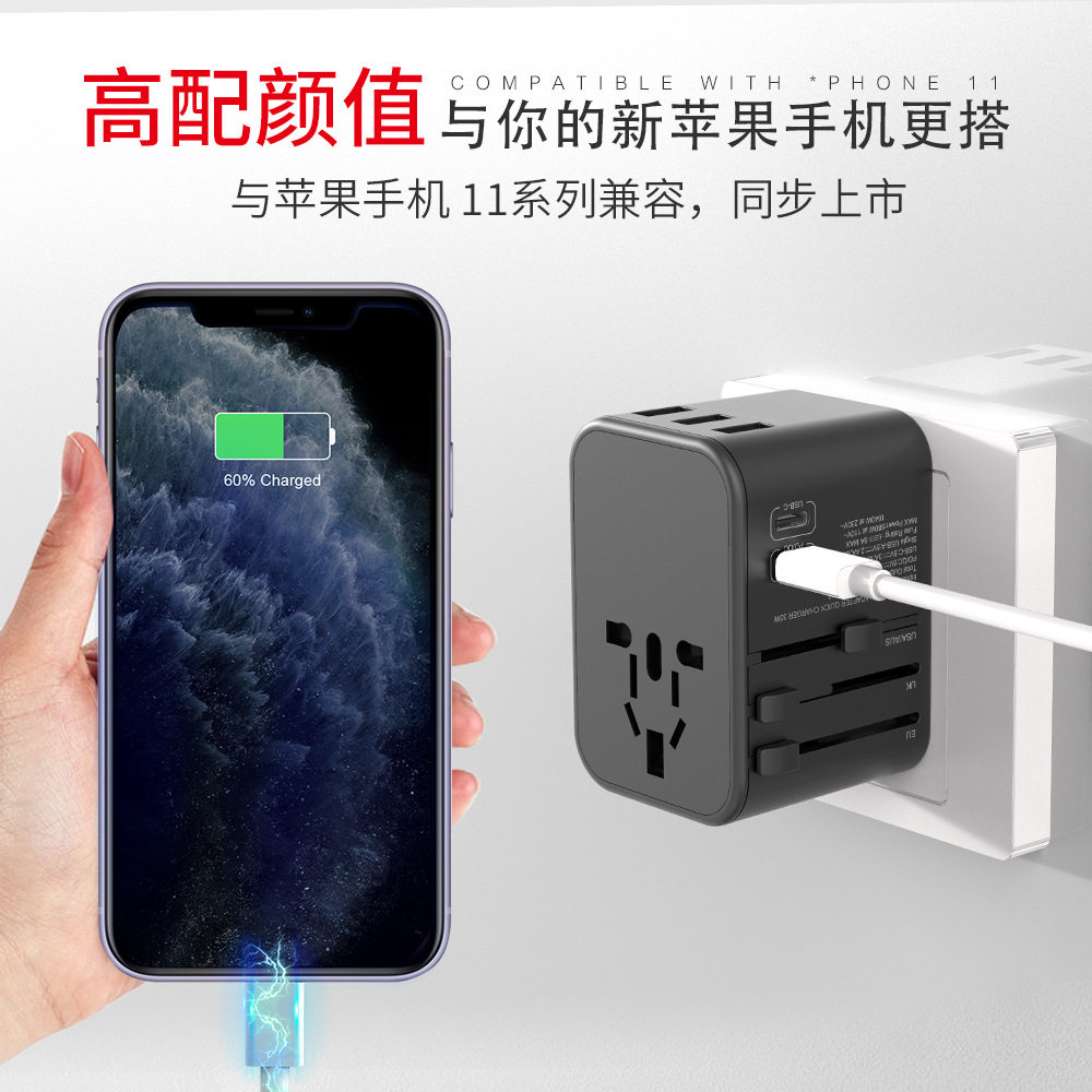 Type-C出国旅行转换插座双USB通用转换插头欧洲美国日本澳洲便携