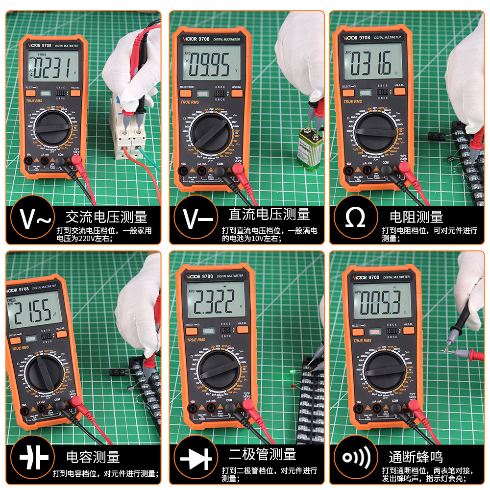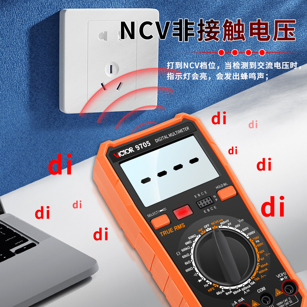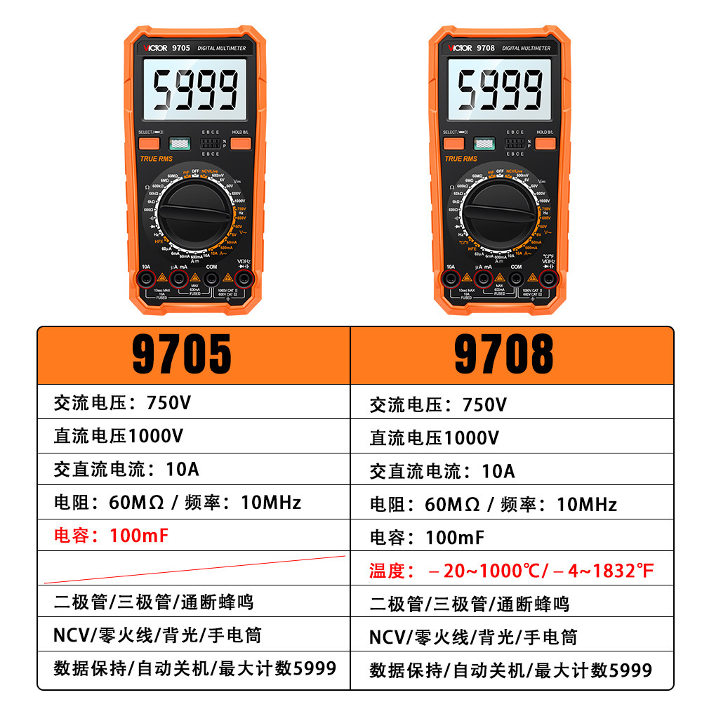 淘宝胜利9705/9708智能防烧数字万用表高精度电阻频率零火线大电容