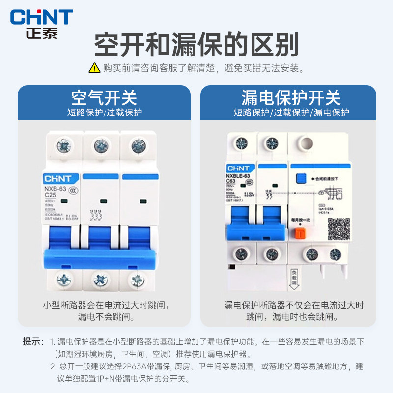淘宝正泰家用空气开关NXB断路器空开漏电保护器漏保32a dz47电闸