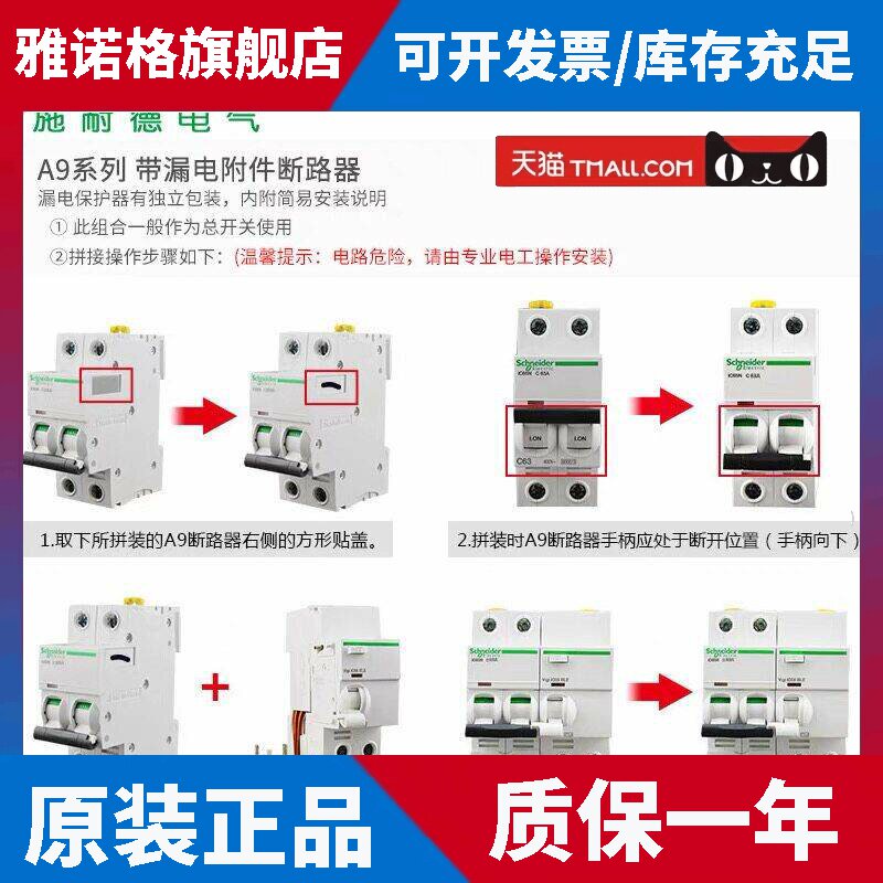 天猫施耐德漏电保护器A9系列,IC65N VIGI原装正品支持验货A型漏电