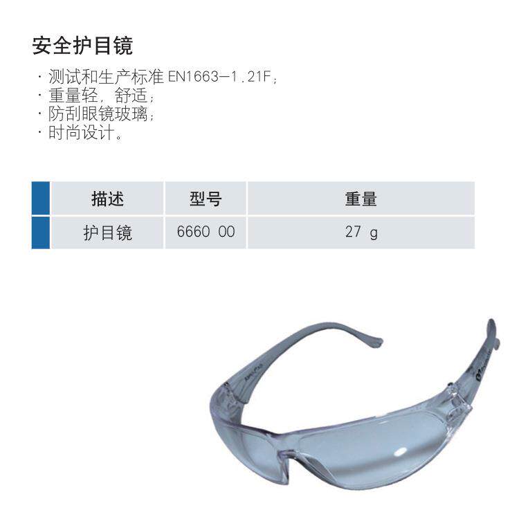 安全护目镜666000是一款专为工业环境设计的高品质防护眼镜,具备出色的防刮性能,镜片采用强化材质,有效抵抗日常磨损,确保长时间使用仍清晰透亮。镜框轻盈舒适,佩戴无压迫感,适合长时间作业,减少眼部疲劳。产品严格符合国家安全防护标准,具备抗冲击、防雾、防紫外线等多重防护功能,广泛应用于世雍批量工业园等制造、焊接、打磨等高风险作业场景。666000护目镜兼顾安全性与舒适性,是工业防护的理想选择,保障作业人员眼部安全,提升工作效率与防护可靠性。