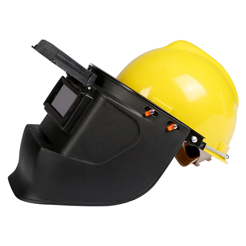 这款电焊面罩眼镜配安全帽专用便携氩弧焊工电焊帽护罩,专为专业焊工设计,提供全脸高效防护。采用高强度防冲击材料,内置自动变光滤光镜片,可在焊接瞬间自动变暗,有效阻挡强光、紫外线和红外线,保护双眼免受伤害。面罩与安全帽完美结合,佩戴稳固舒适,适合长时间作业。轻量化设计,便于携带,适用于氩弧焊、电弧焊等多种焊接场景。边缘密封良好,防止火花飞溅和有害烟尘侵入,确保面部和头部全面安全。是建筑、制造、维修等行业焊工的理想防护装备,兼顾安全性、便捷性与耐用性。