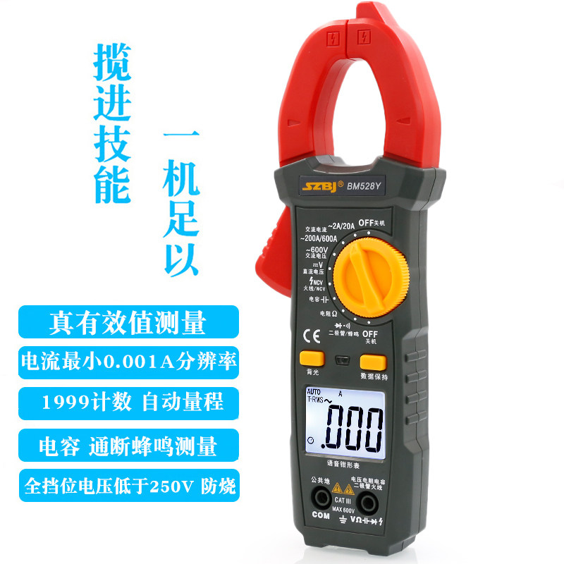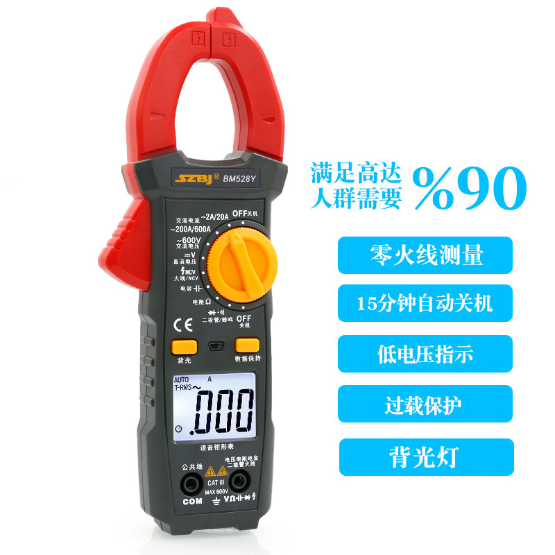 淘宝滨江BM528Y语音播报数字智能防烧钳形表万用表交流电流表电容