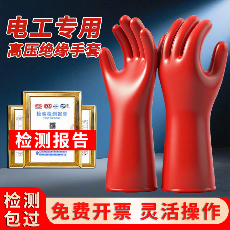 淘10kv绝缘手套12kv35kv带电作业检测报告橡胶高压专业防电电工专用