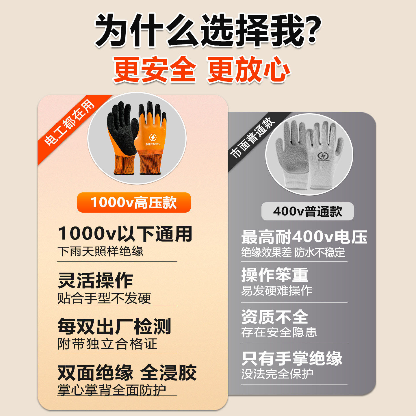 淘电工绝缘手套低压防静电400v防水防切割500v新能源专用1000v薄款