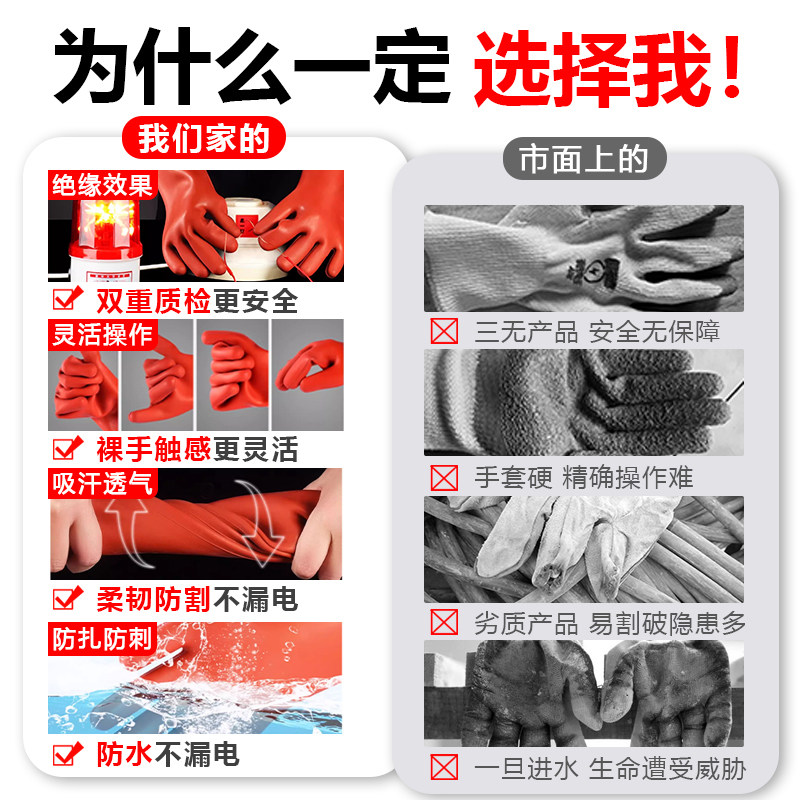淘绝缘手套电工380v防电低压220v薄款400v专用带电作业专业接线超薄