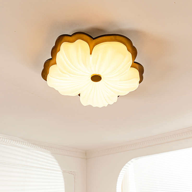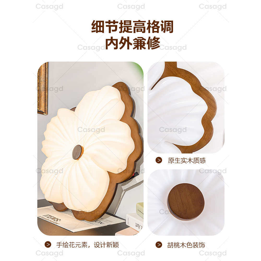淘宝侘寂风胡桃木色花朵卧室吸顶灯中古实木护眼主卧书房灯具casagd