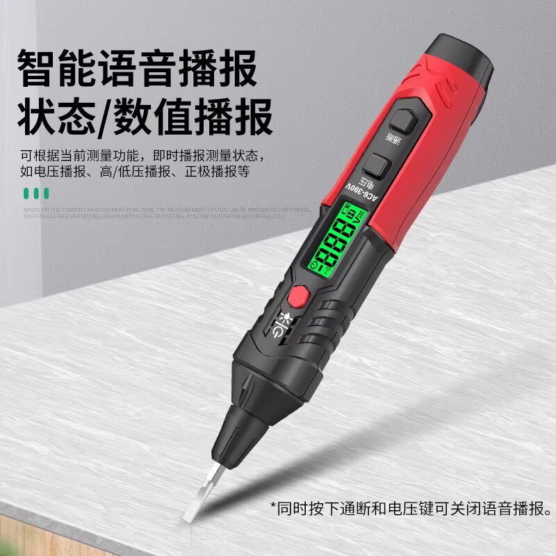 智能语音测电笔NVC是一款专为电工设计的高精度线路检测工具,集成非接触式电压感应(NVC)技术,可快速识别带电线路并精准定位断点。其内置智能语音播报功能,实时提示电压状态与检测结果,提升操作安全性与效率。高精度感应头支持微弱电流识别,适用于家庭、工业等多种电路环境。同时具备螺丝刀功能,一物多用,便携实用。LED背光显示屏清晰显示电压等级,夜间作业更便捷。符合安全标准,绝缘手柄设计有效防触电,是电工日常检修、故障排查的理想助手,兼顾智能、安全与高效。