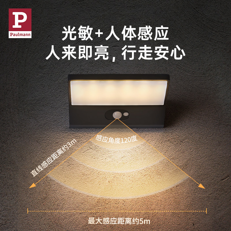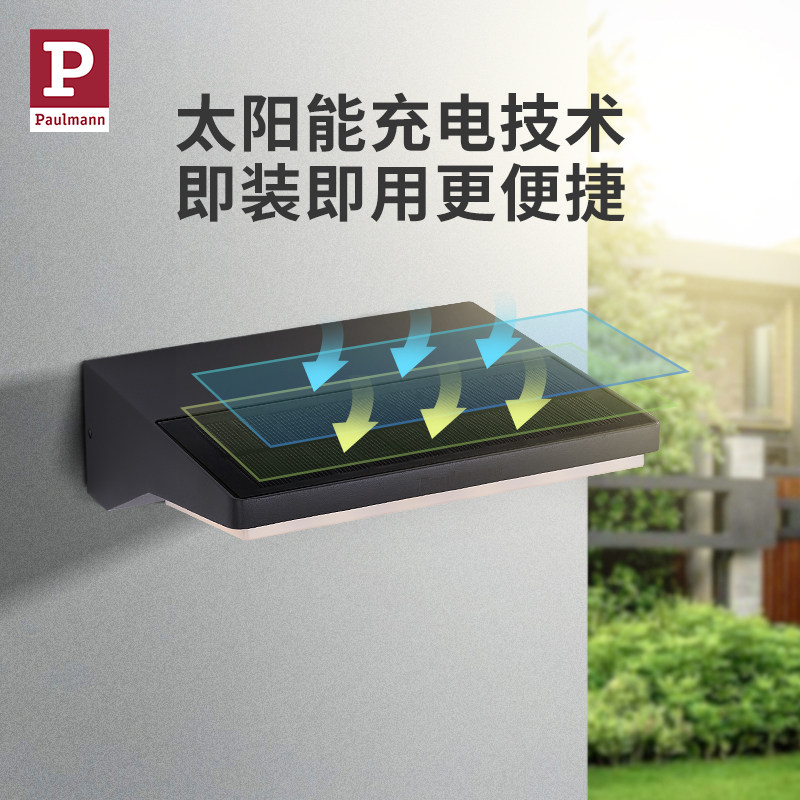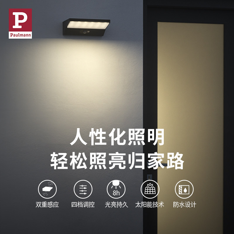 天猫德国柏曼太阳能户外感应灯家用阳台花园庭院壁灯室外照明防水灯具