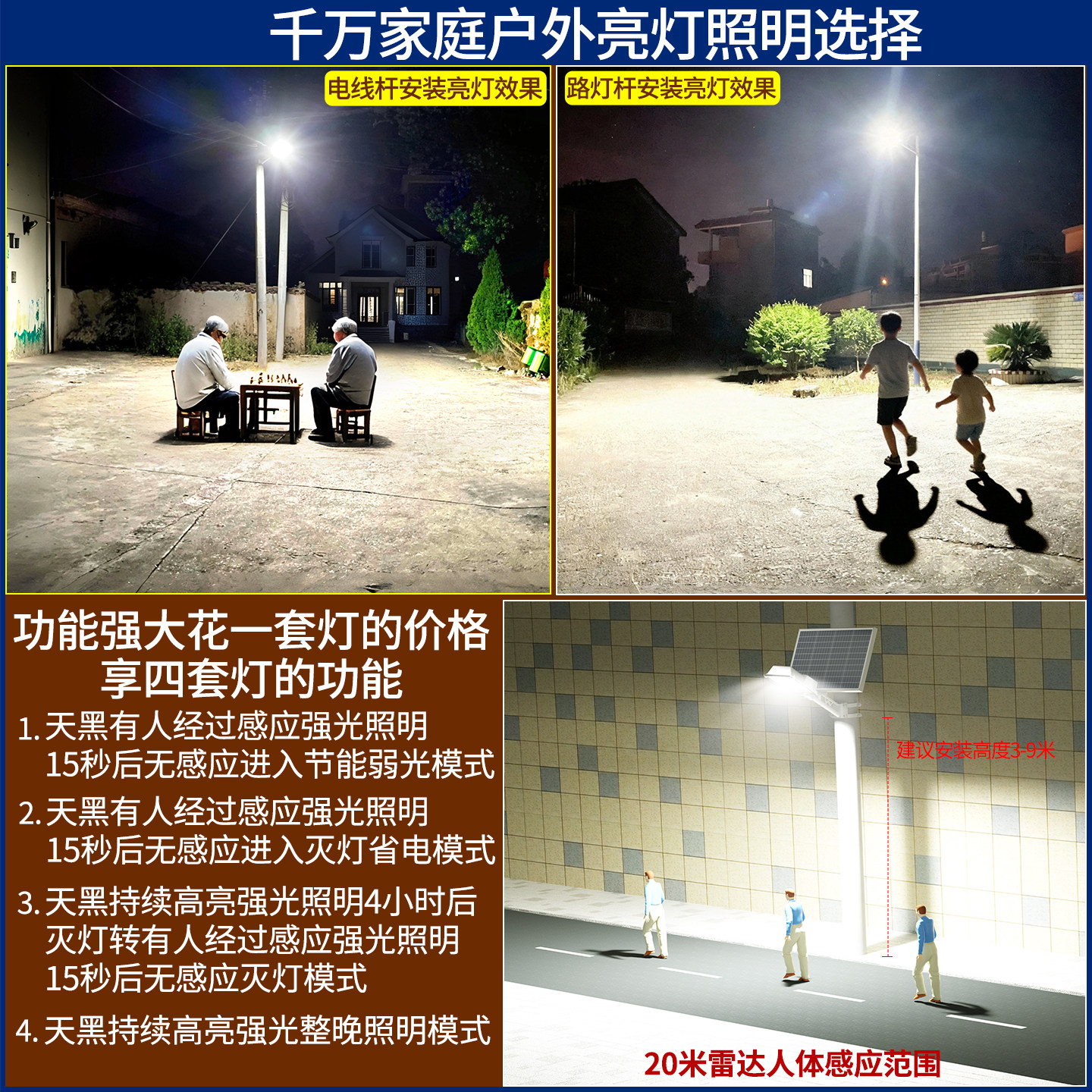 太阳能户外灯庭院灯家用LED室内照明超亮新农村室外防水感应路灯