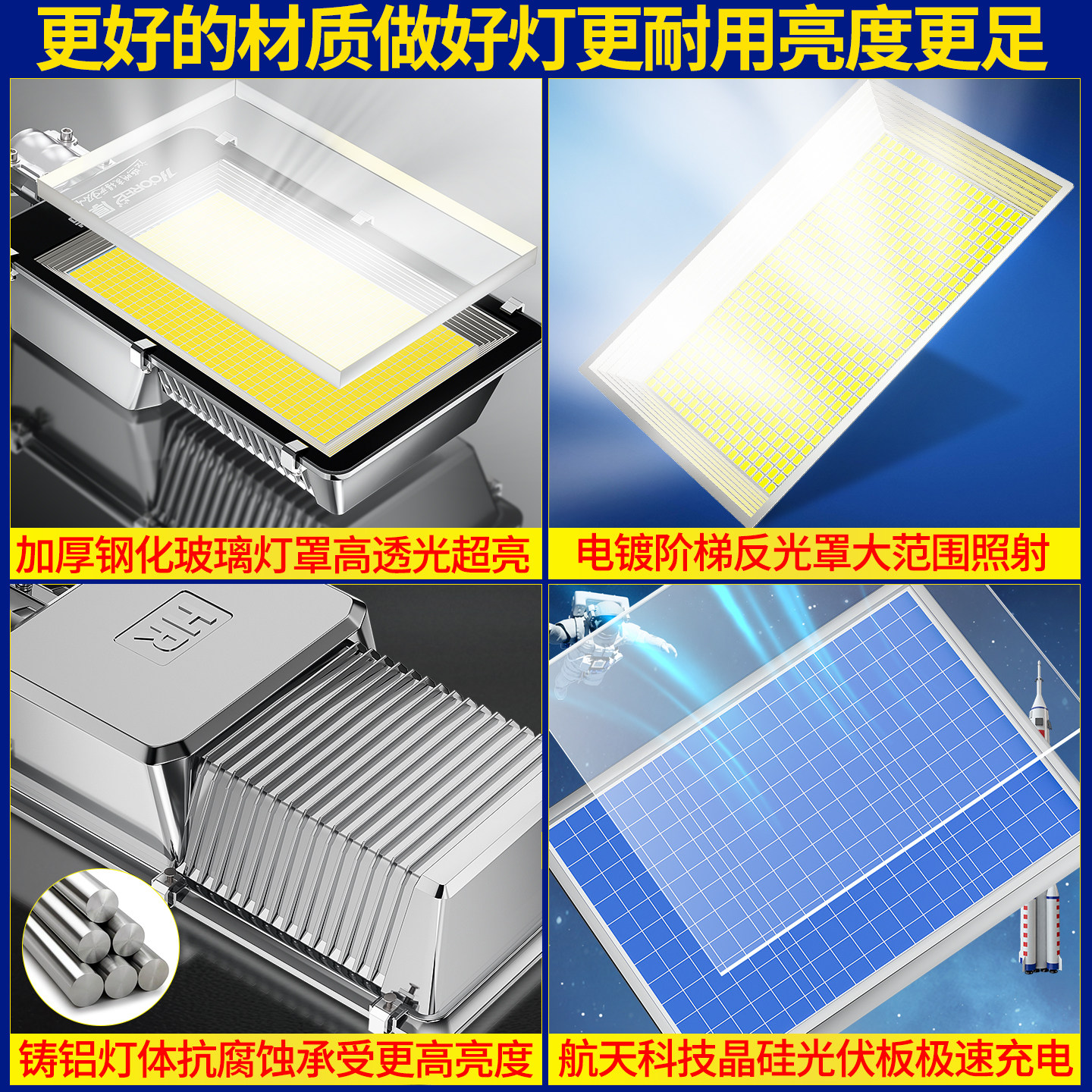 新款太阳能户外照明庭院投光灯超亮大功率室内外防水家用LED路灯