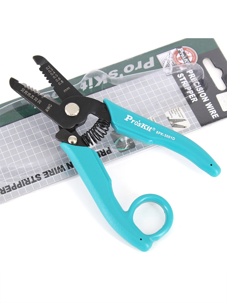 台湾宝工(Pro'sKit)剥线钳是一款工业级多功能电工工具,集剥线、剪线、压接于一体,专为专业电工及电子工程人员设计。采用优质高碳钢材质,经精密热处理,确保刃口锋利耐用,使用寿命长久。人体工学防滑手柄设计,握感舒适,操作省力。适用于多种规格电线(AWG 10-24),剥线精准不伤导体,提升作业效率与安全性。产品通过国际质量认证,性能可靠,广泛用于电力、通信、家电维修等领域。作为进口专业工具,宝工剥线钳以卓越工艺和稳定品质赢得全球用户信赖,是电工工具箱中的必备利器。