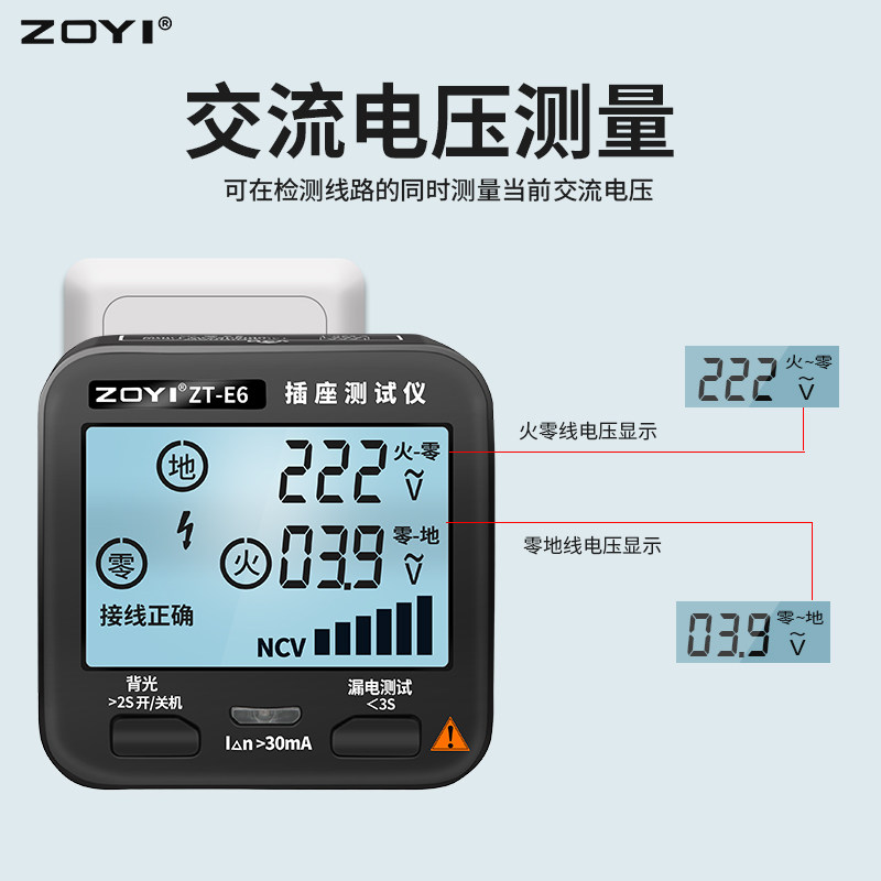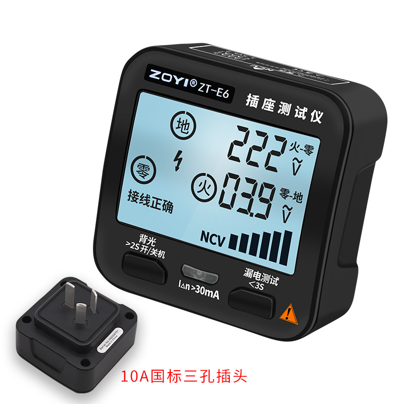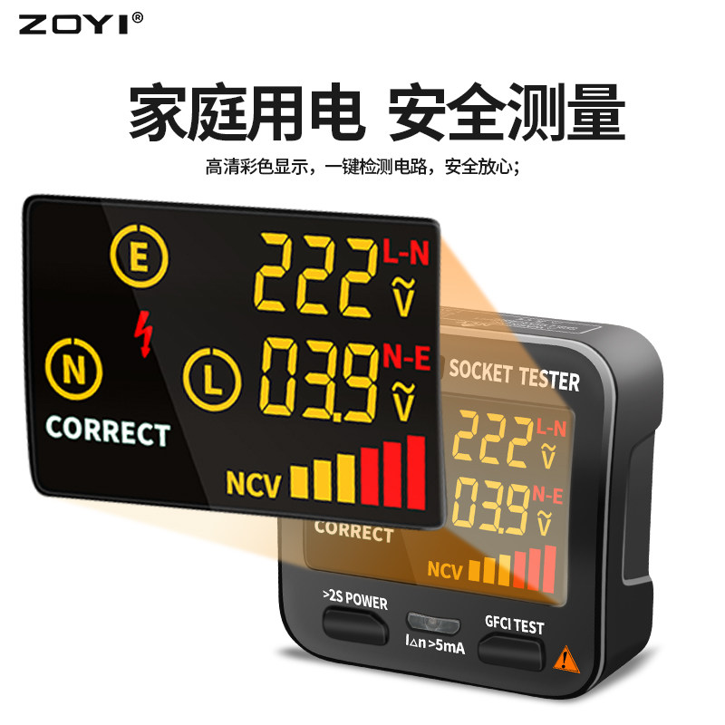 众仪数显插座测试仪是一款集多功能于一体的电工检测工具,具备电源极性检测、漏电开关保护测试、NCV非接触式电压探测等功能。其高清数字显示屏可直观显示插座接线状态(如L/N/PE是否正确),快速识别反接、缺地、错相等隐患。内置智能芯片,支持RCD漏电保护器动作测试,确保用电安全。NCV非接触测电功能无需接触导体即可感知周围电场,安全便捷。适用于家庭、工地、电器维修等场景,体积小巧、操作简便,是电工及普通用户排查电路故障、保障用电安全的得力助手。