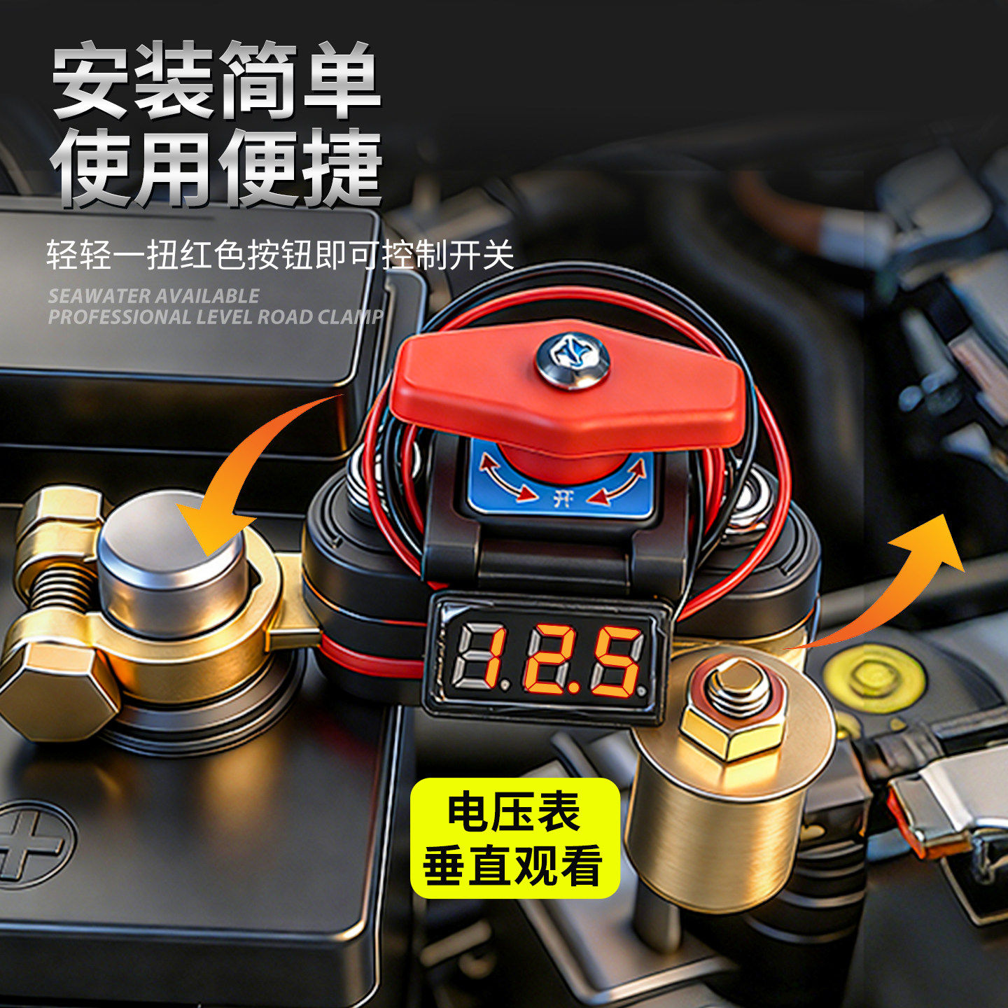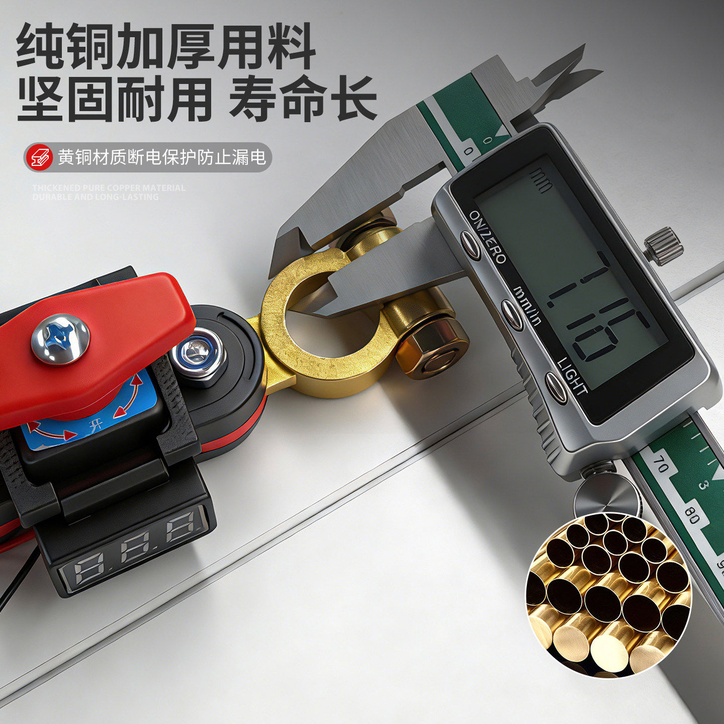 360度旋转断电开关带电压显示,专为12V/24V小轿车设计,是一款高效防漏电保护器。采用加厚纯铜材质,导电性能优异,耐高温、抗氧化,确保长期稳定运行。独特的360度旋转设计,操作灵活便捷,可轻松切断或接通电路,有效防止车辆长期停放导致的电瓶亏电。内置高精度电压显示屏,实时监测电瓶电压,让您随时掌握电量状态。安装简便,兼容多种车型,广泛应用于轿车、越野车、货车等。具备过载保护和短路防护功能,安全可靠。是保护爱车电路、延长电瓶寿命的理想选择,为您的出行提供安心保障。
