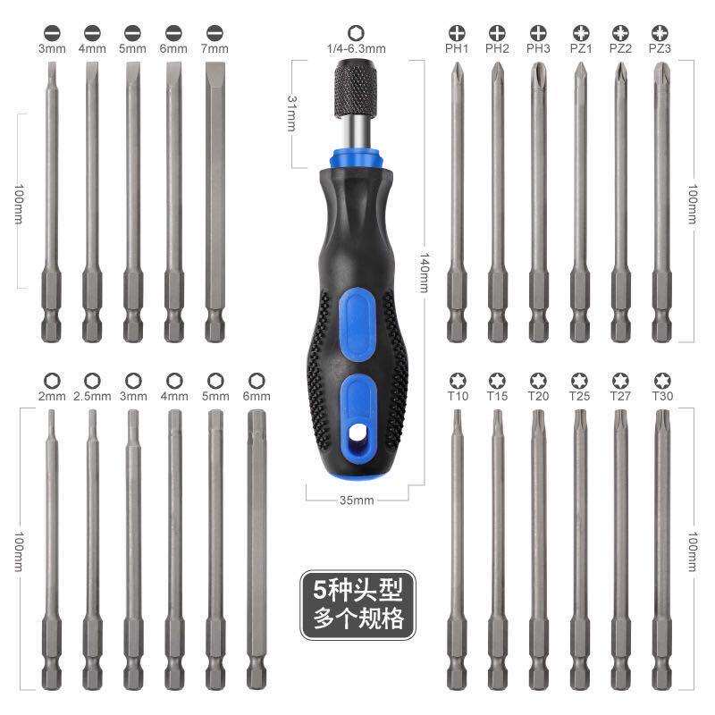 本电动螺丝批组套是一款集多功能于一体的精密工具套装,适用于家居维修、电子设备拆装、家具组装等多种场景。套装包含一字、十字、内六角、梅花(Torx)等多种常用批头,兼容性强,可应对不同螺丝类型。采用高品质合金钢材质,硬度高、耐磨损,确保长久使用不变形。配备便携式收纳盒,分类清晰,便于携带与收纳。部分型号支持与电动螺丝批配合使用,提升工作效率,同时也可手动操作,灵活便捷。无论是DIY爱好者还是专业维修人员,这款多功能螺丝刀套装都能满足日常需求,是工具箱中的实用之选。