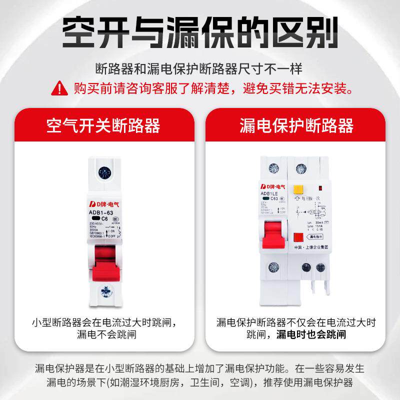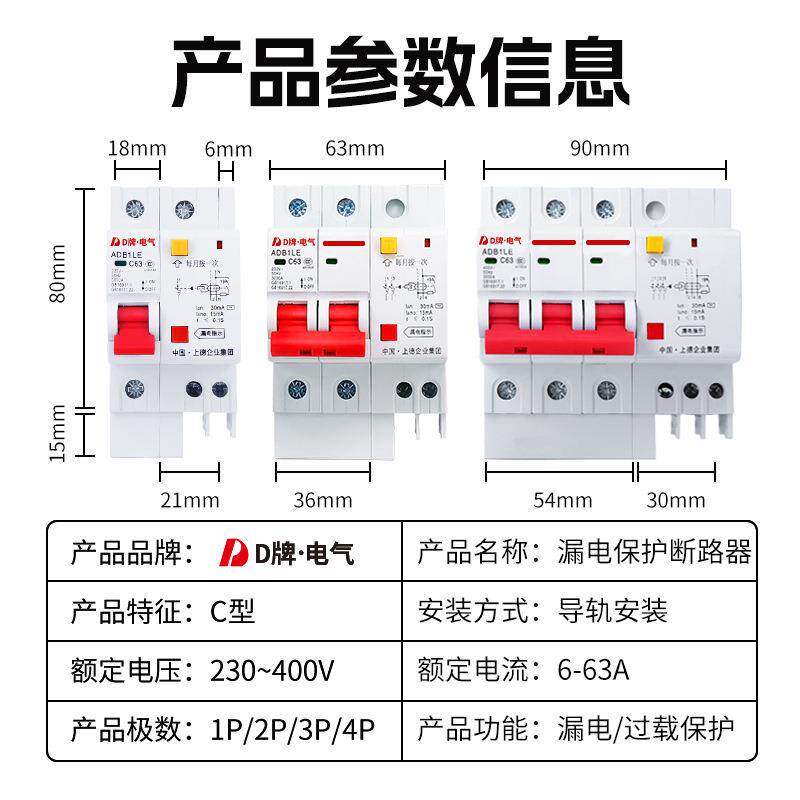 淘宝D牌漏电保护器家用空气开关断路器1P2P4P三相漏电DZ47LE-63/3P+N
