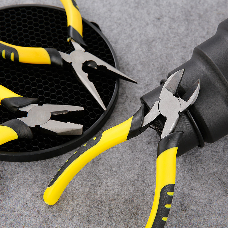 这款多功能手钳套装包含老虎钳、钢丝钳、斜口钳和尖嘴钳,涵盖8寸与6寸两种常用规格,满足家庭维修、电工操作及日常DIY需求。老虎钳夹持力强,适合夹紧或扭转工件;钢丝钳可轻松剪断铁丝、钢线;斜口钳专为剪切电线和细小金属设计;尖嘴钳则适用于精细操作和狭小空间作业。整体采用高碳钢锻造,硬度高、耐用防锈,手柄防滑设计握感舒适,操作省力。集多种功能于一体,是家庭工具箱的理想选择,无论是修理家电、安装家具还是电路维护,都能轻松应对,实用性强,性价比极高。