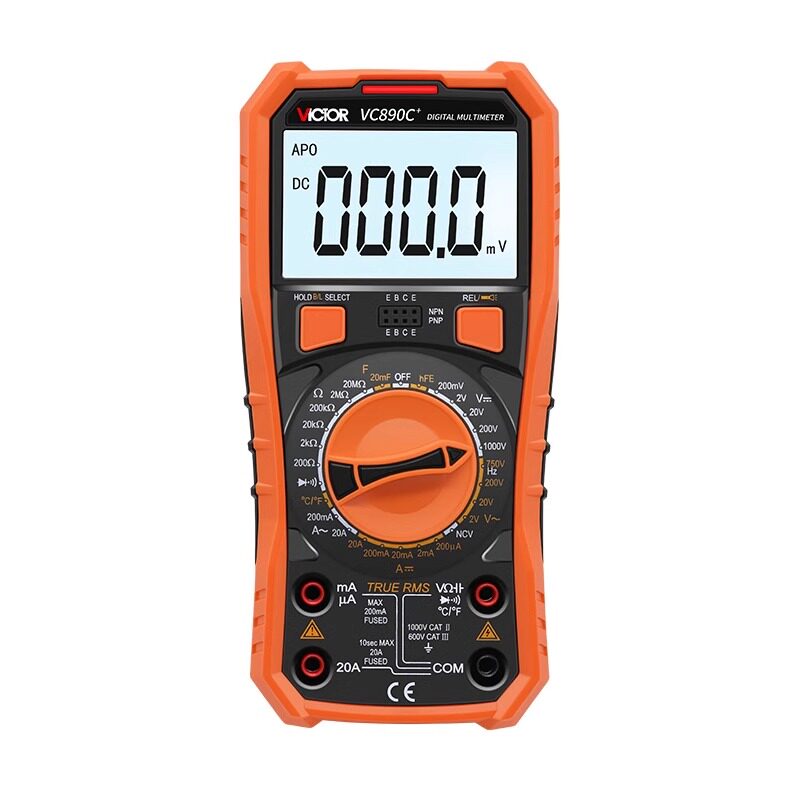胜利仪器VC890C+是一款高精度全智能数字万用表,专为维修电工及电子技术人员设计。具备自动量程切换功能,操作简便,测量精准,可测量直流/交流电压、电流、电阻、电容、频率、温度及二极管通断等参数。配备背光LCD大屏,数据清晰易读,支持数据保持与相对值测量,提升工作效率。内置过载保护和防震外壳,安全可靠,适用于工业、家电维修及实验室等多种场景。VC890C+凭借其稳定性能、丰富功能与人性化设计,成为电工日常检测与维护的理想工具,兼顾专业性与实用性,是万用表中的优选之作。