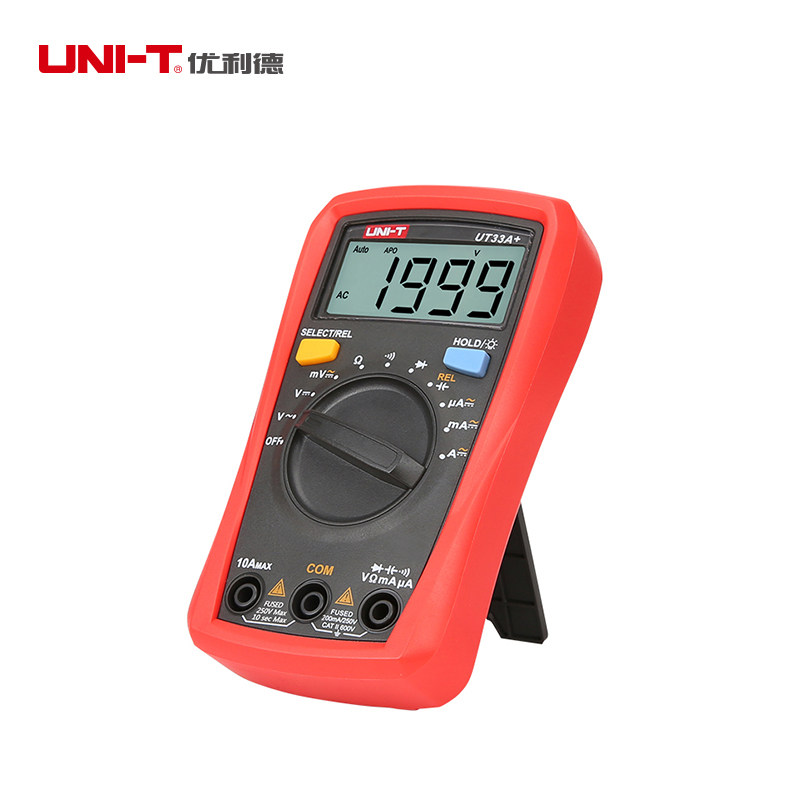 优利德UT33A增强版是一款专为电子爱好者及维修人员设计的小型数显万用表。采用自动量程技术,操作简便,测量更精准。具备自动防烧保护功能,有效防止误操作导致的仪表损坏,使用更安全。配备高清背光显示屏,即使在昏暗环境中也能清晰读数。支持电压、电流、电阻、通断测试、二极管检测等多种功能,满足日常检测需求。体积小巧,携带方便,外壳坚固耐用。内置低电压提示和自动关机功能,延长电池寿命。无论是家庭电器维修、汽车电路检测还是教学实验,UT33A增强版都是可靠实用的测量工具,性价比极高。