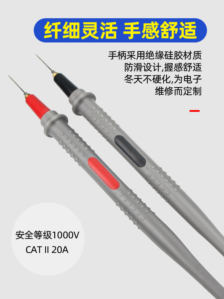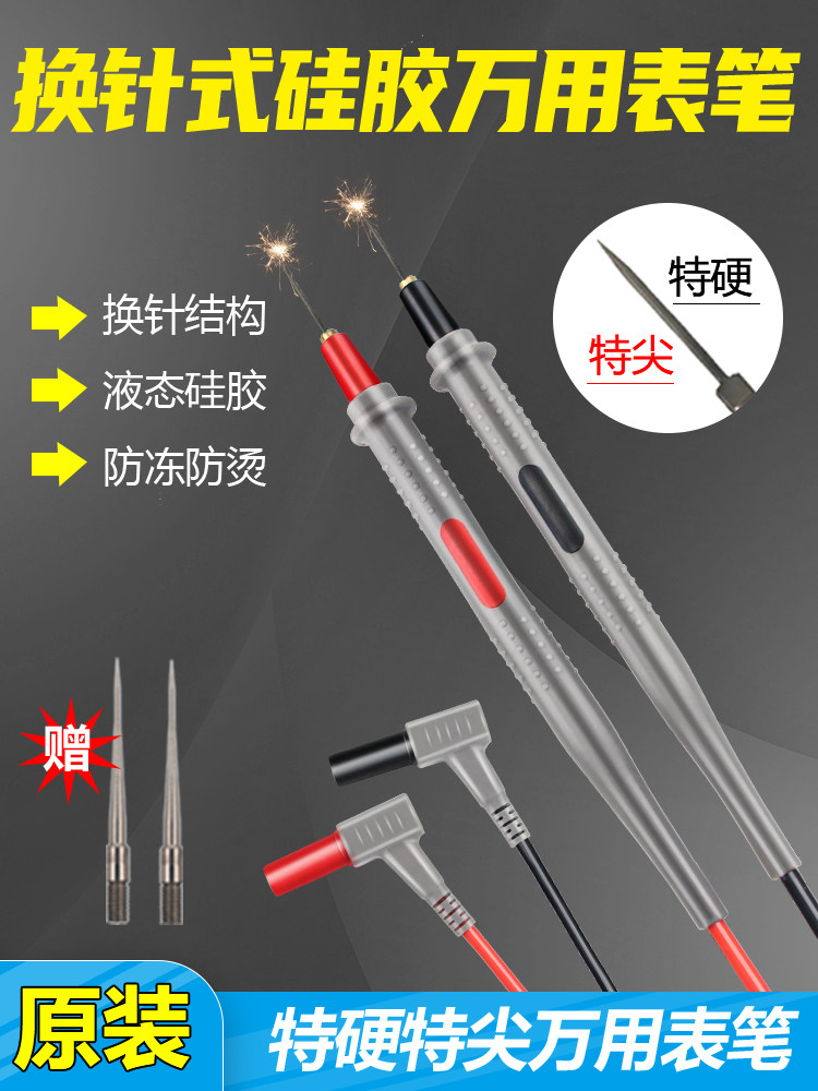 淘万用表表笔线特尖钢针加长通用细尖头线流硅胶防冻万能表探针配件