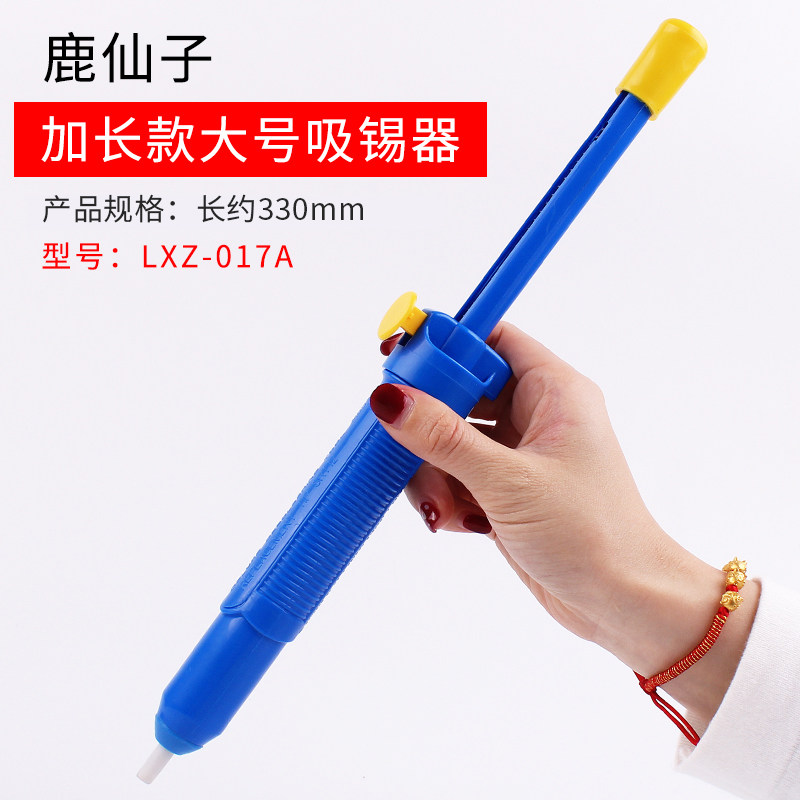 鹿仙子强力吸锡器(大号吸锡枪)是一款专为电子维修设计的高效手动吸焊工具,俗称“大蓝棒”。采用双环密封结构,提供强劲吸力,轻松快速清除焊点上的多余焊锡,适用于电路板维修、元件更换等精细作业。其大号设计兼顾握感舒适与操作省力,耐用工程塑料机身搭配精密活塞结构,确保长久稳定使用。无论是DIY爱好者还是专业维修人员,都能凭借其高效吸锡性能提升工作效率。操作简单,无需电源,环保便捷,是电子维修工具箱中的必备利器。