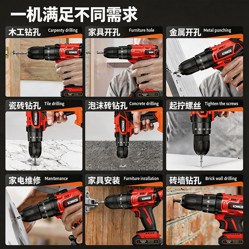 纯铜无刷冲击手电钻“21V小钢炮”是一款高性能电动工具,专为高效打孔与冲击作业设计。搭载21V锂电池,动力强劲,续航持久,无刷电机高效节能、寿命更长。采用纯铜绕组,导电性佳、发热低,运行更稳定。具备冲击功能,适用于混凝土、砖墙、金属等多种材质打孔,背部设计敲击辅助结构,操作更省力。机身轻巧紧凑,握持舒适,支持背部挂扣,便于携带与收纳。广泛应用于家庭装修、设备维修、工程安装等场景,是专业技工与DIY爱好者的理想选择,兼顾高效、耐用与便捷。