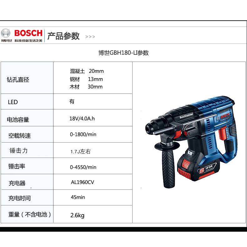 淘宝博世GBH180-LI无刷充电电锤18V锂电池多功能电镐冲击钻电锤博士