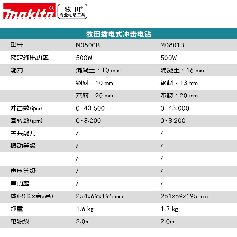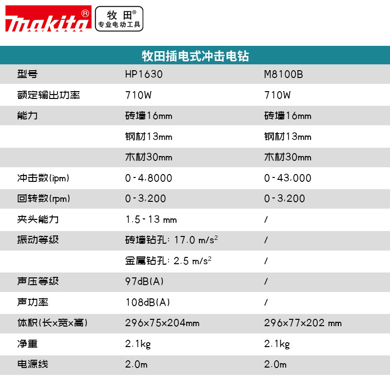 淘宝牧田HP1630插电式冲击电钻大扭矩多功能木工金属开孔电钻手电钻