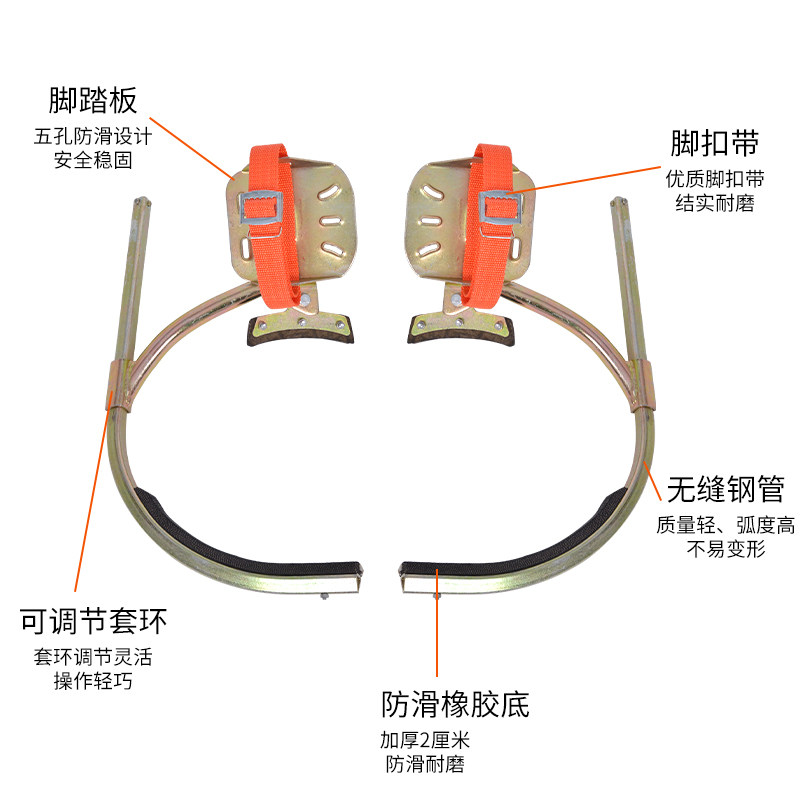 淘极速国标加厚电工脚扣攀爬器爬水泥杆防滑电线趴脚踏铁鞋电力电杆