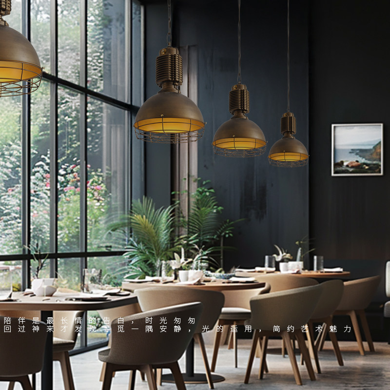 淘日式制复古做旧年代黄铜灯金属工业吊灯工业风茶室吧台床头小吊灯