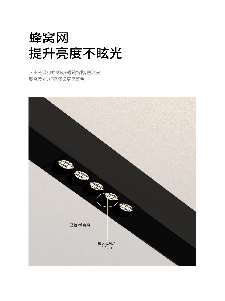 KOEY柯易餐厅吊灯是一款融合全光谱照明与智能控制的现代家居灯饰,专为餐桌氛围打造。采用一字型线条设计,简约流畅,完美契合现代简约、北欧及轻奢风格空间。搭载全光谱LED光源,高度还原自然光色,显色指数高达Ra95以上,呵护双眼同时提升食物真实色泽,营造温馨用餐环境。支持智能调光调色,可通过APP或语音助手随心调节亮度和色温,适配不同场景需求。安装便捷,光线柔和不刺眼,既满足功能性照明,又成为餐桌上的艺术点缀,为现代家庭带来舒适、智能与美学的完美融合。