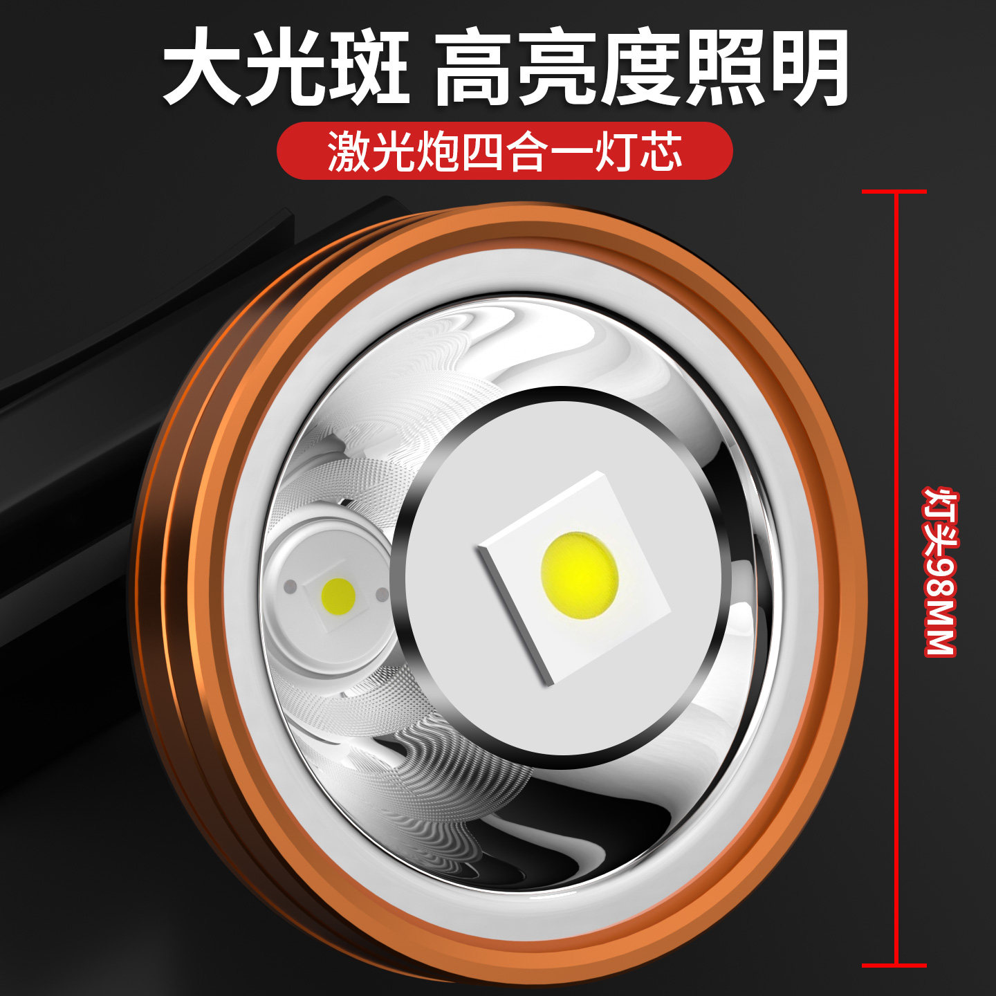 头灯强光充电超亮远射头戴式led电筒户外防水照明灯锂电黄光矿灯