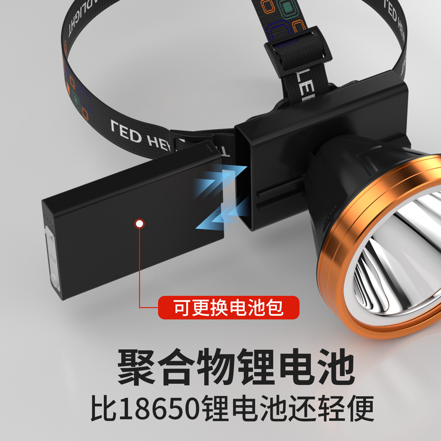 淘宝新款换电式LED头灯强光充电超亮头戴式户外照明大功率手电筒应急