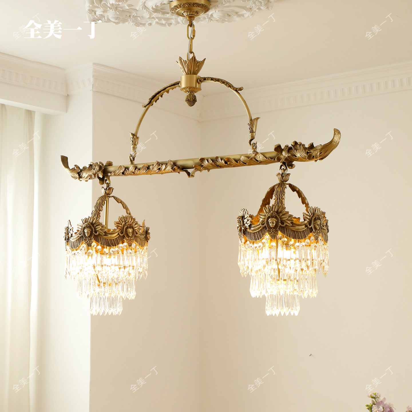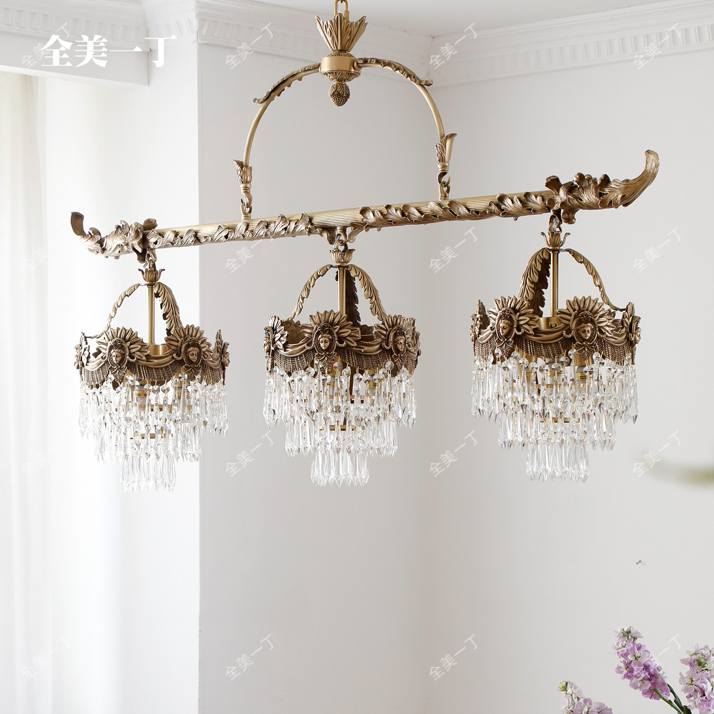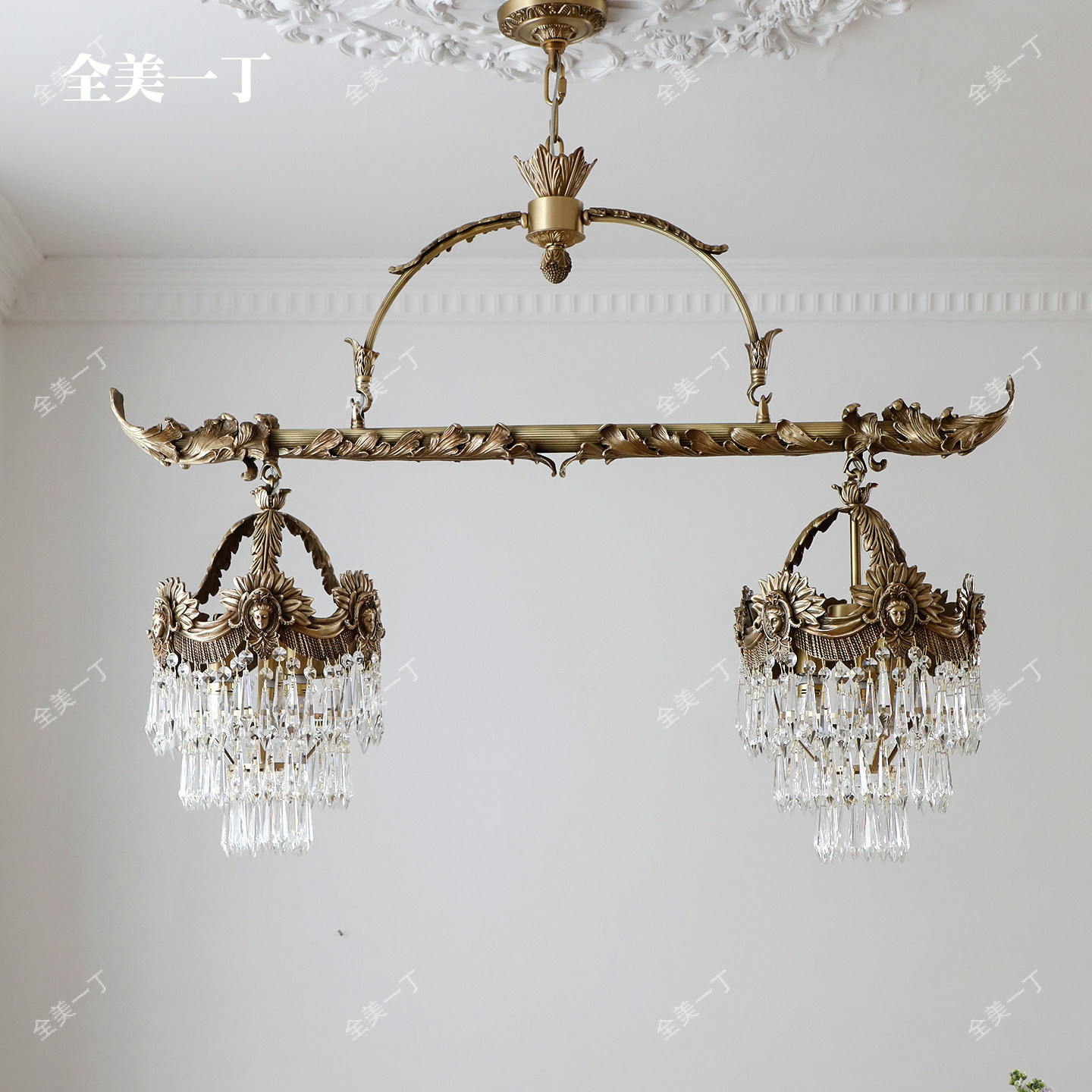 淘宝全美一丁法式长型餐厅吊灯欧式书房水晶奢华大气复古别墅全铜灯具