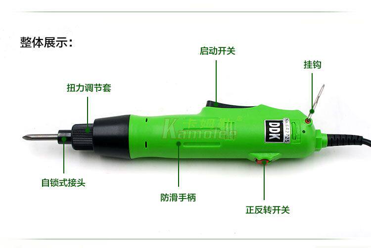 802电批电动螺丝刀是一款高效实用的220V直插式电动工具,适用于家庭维修、家具组装、设备维护等多种场景。配备1/4英寸标准批头接口,兼容常见螺丝刀头,操作灵活便捷。采用强劲电机,提供稳定扭矩输出,轻松应对各种紧固与拆卸任务。直插供电设计确保持续动力,避免电池续航烦恼。人体工学手柄设计,握感舒适,长时间使用不易疲劳。部分型号具备正反转切换功能,提升作业效率。相比传统风批,体积更小巧,适合精细作业。802电批兼具性能与性价比,是DIY爱好者和专业维修人员的理想选择,广泛应用于电子、家电、装修等领域,提升工作效率。