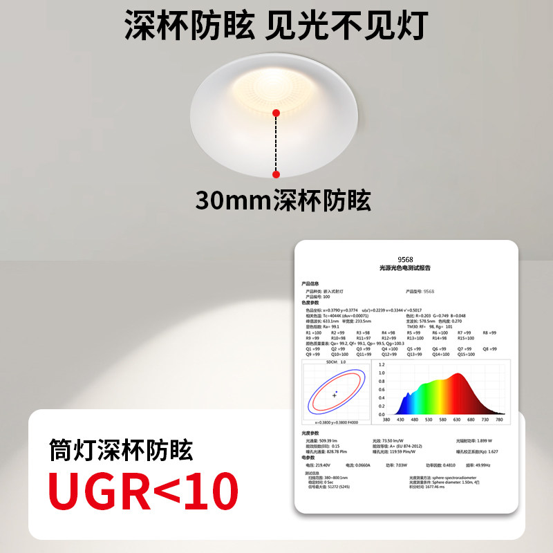 淘晓和 全光谱低蓝光 深筒防眩射灯、筒灯P5 mesh2.0,智能调光