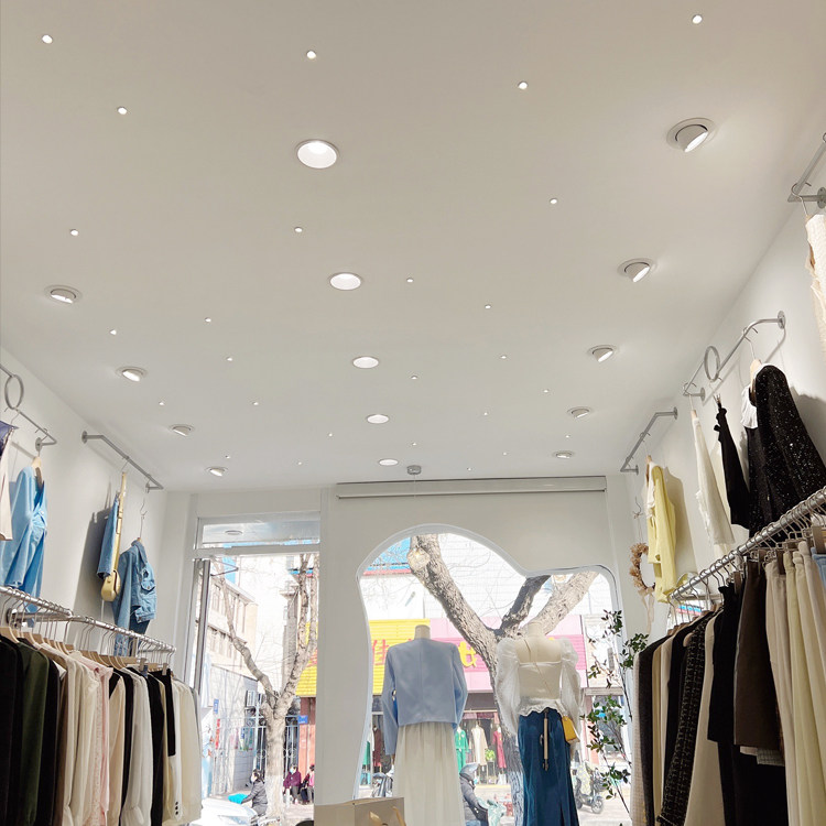 嵌入式LED筒灯专为商用服装店铺设计,采用高品质COB光源,光线均匀柔和,显色指数高,真实还原衣物色彩。无频闪技术有效保护顾客视力,营造舒适购物环境。深藏式防眩光设计,光源深嵌,遮光角大,避免直射刺眼,提升空间层次感。超亮照明确保店铺整体明亮通透,突出商品细节与质感。安装于天花孔位,简洁美观,不占空间,适用于各类商业照明场景。高效节能、寿命长久,兼具美观与实用性,是服装店、展厅等高端商业空间照明的理想选择。