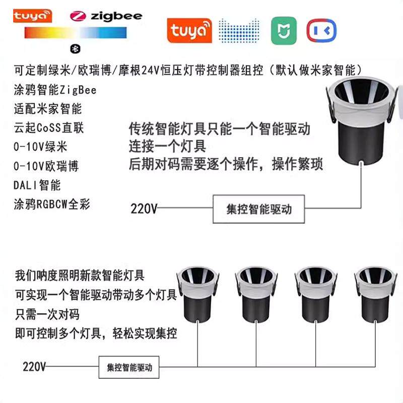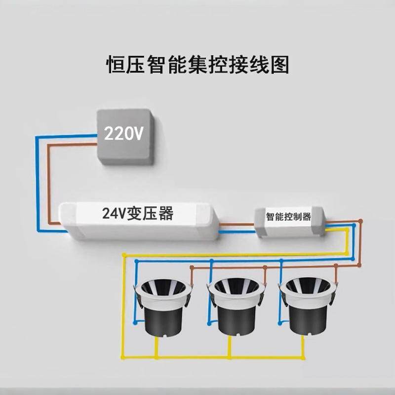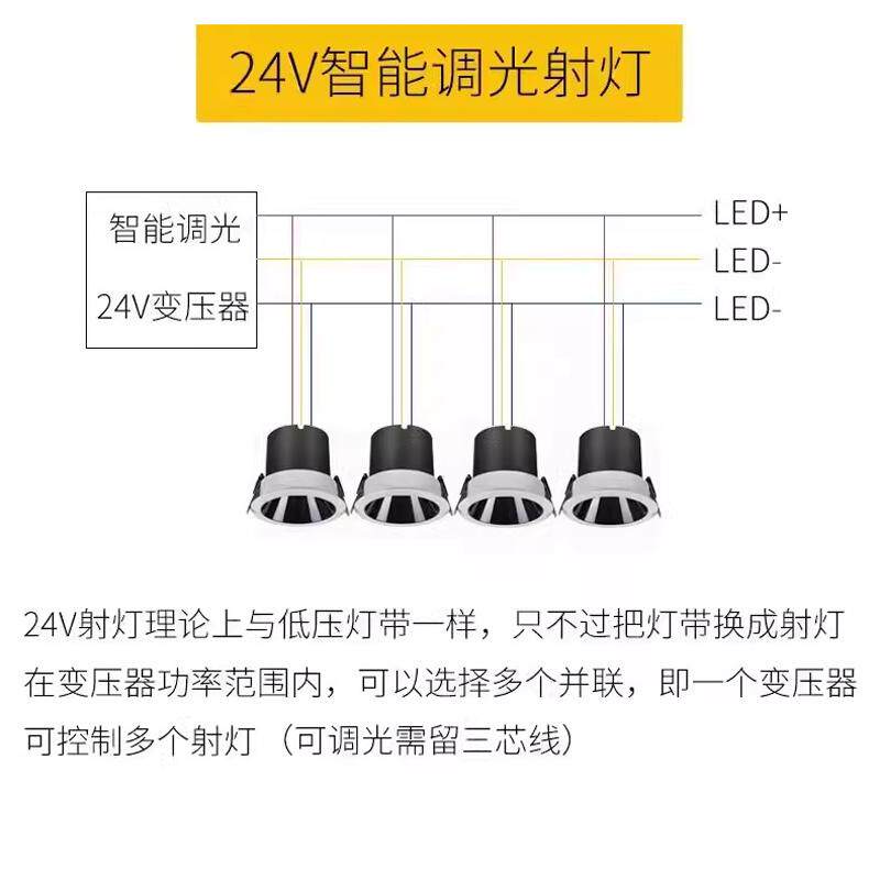 淘宝24V恒压防眩射灯嵌入式无极调光调色智能集控可调亮暗筒灯3线低压
