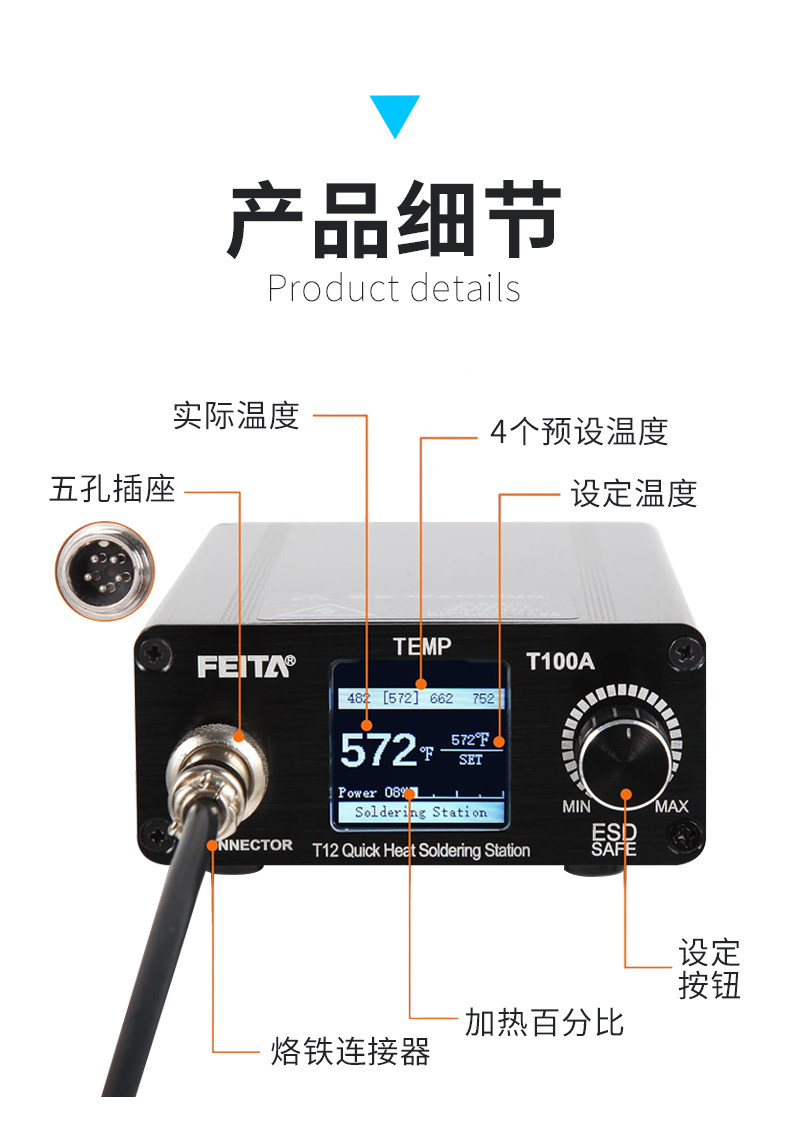 T12焊台小型电烙铁是一款专为手机维修、电子DIY及家用设计的便携式恒温焊接工具。采用先进的T12发热芯技术,升温迅速,热恢复性强,支持精准温控(通常200°C–450°C可调),确保焊接稳定高效。小巧轻便的设计便于长时间操作,减少手部疲劳。套装通常包含多种烙铁头(尖头、刀头、马蹄头等),适配不同焊接需求。配备USB或交流供电,兼容移动电源,适合外出维修使用。恒温功能有效防止过热损坏元件,提升焊接安全性与精度。无论是维修手机主板、焊接电路板,还是手工制作,T12焊台都是电子爱好者和专业维修人员的理想选择,兼具性能、便携与耐用性。