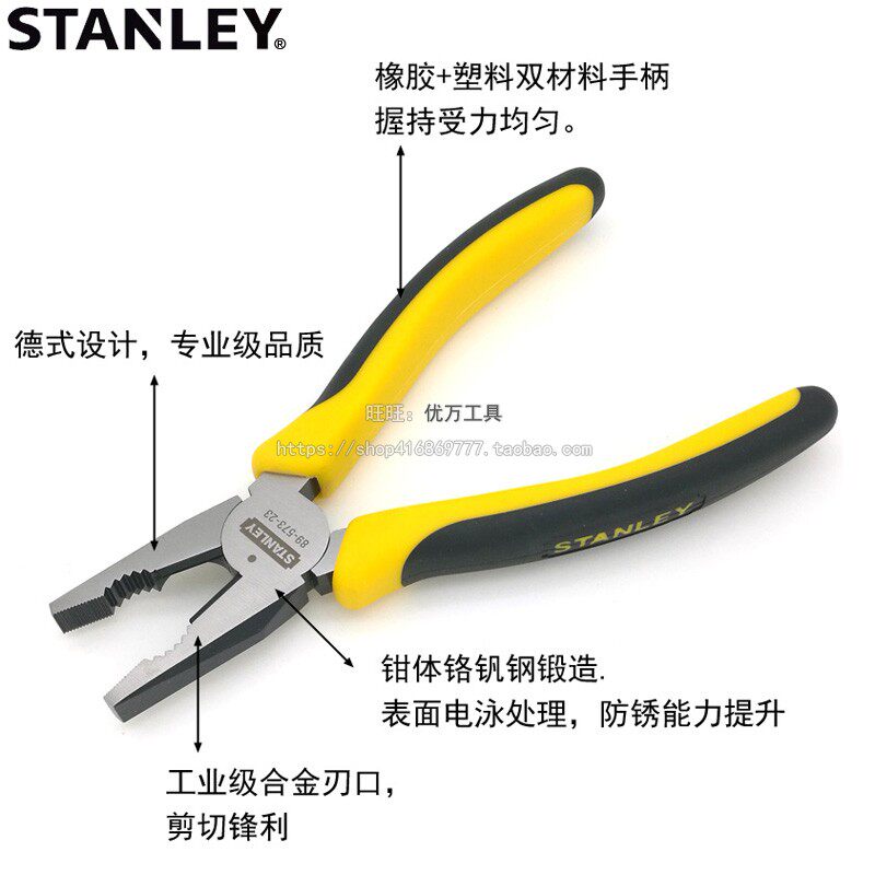 淘宝史丹利德式专业尖嘴钳钢丝钳斜嘴钳子省力型6寸/7寸/8寸老虎钳