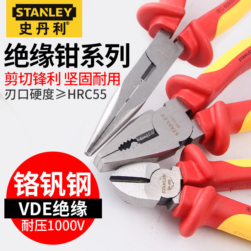 天猫史丹利绝缘钳尖嘴钳斜嘴斜口钳电工钳子老虎钳德国VDE钢丝钳工具