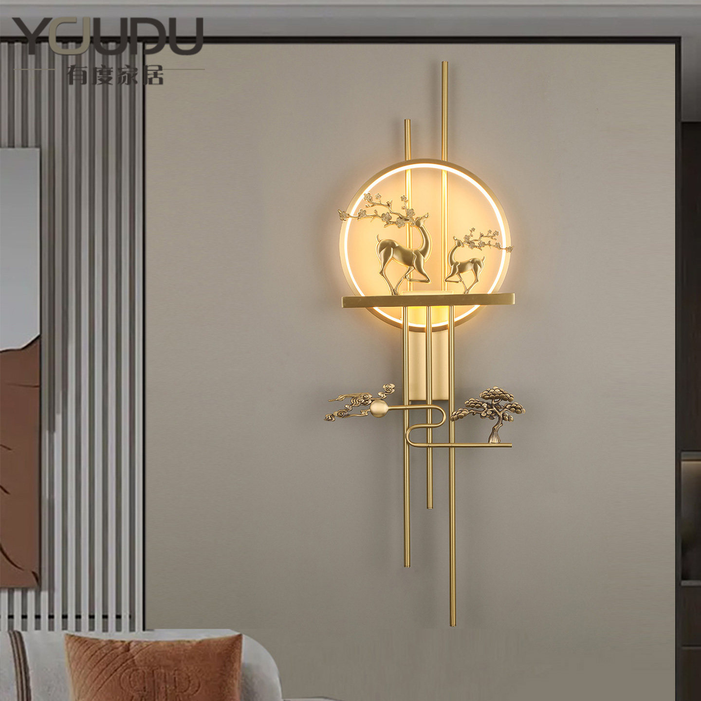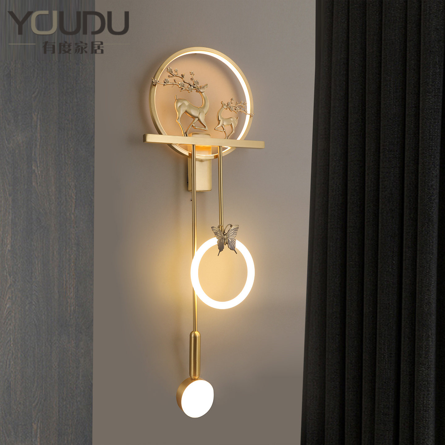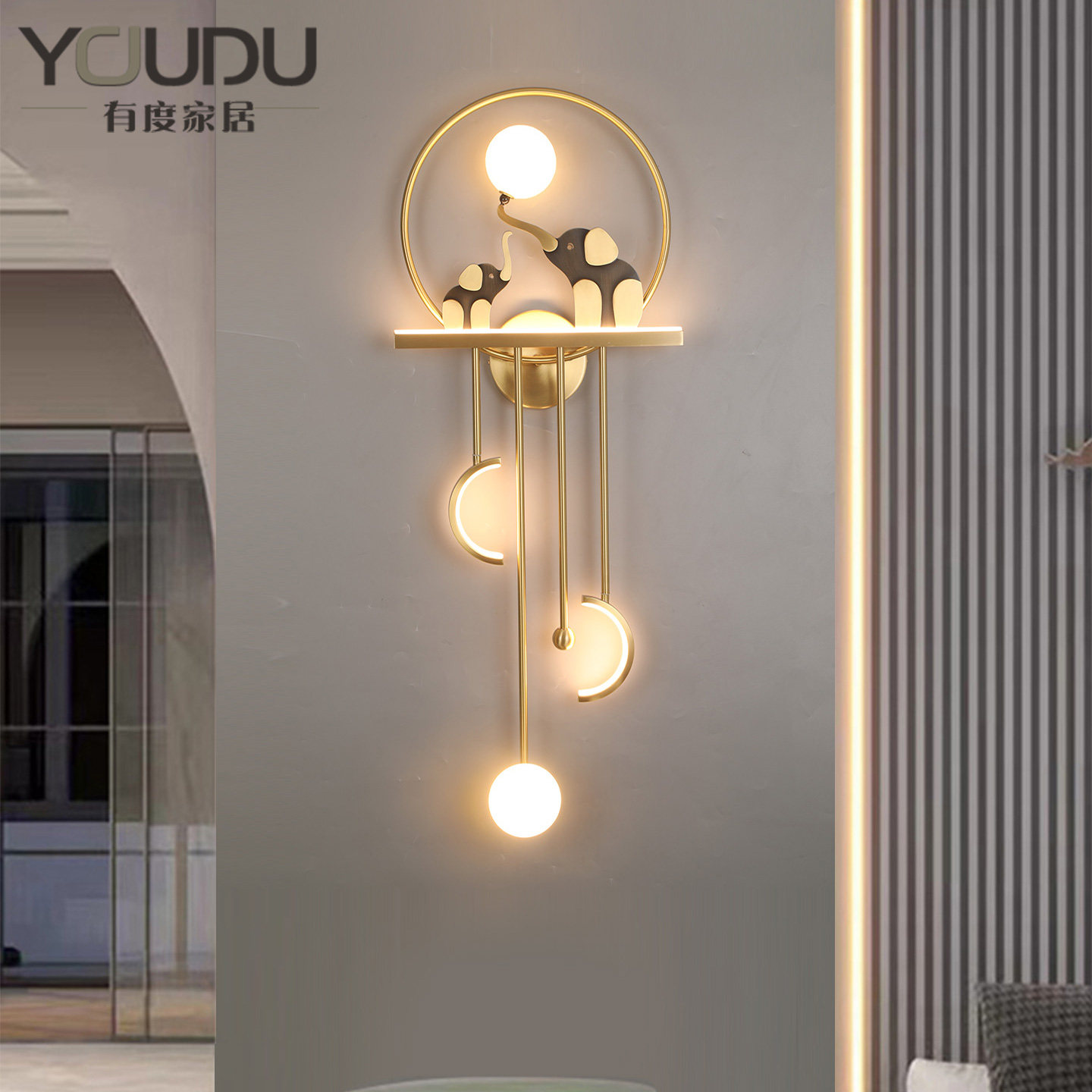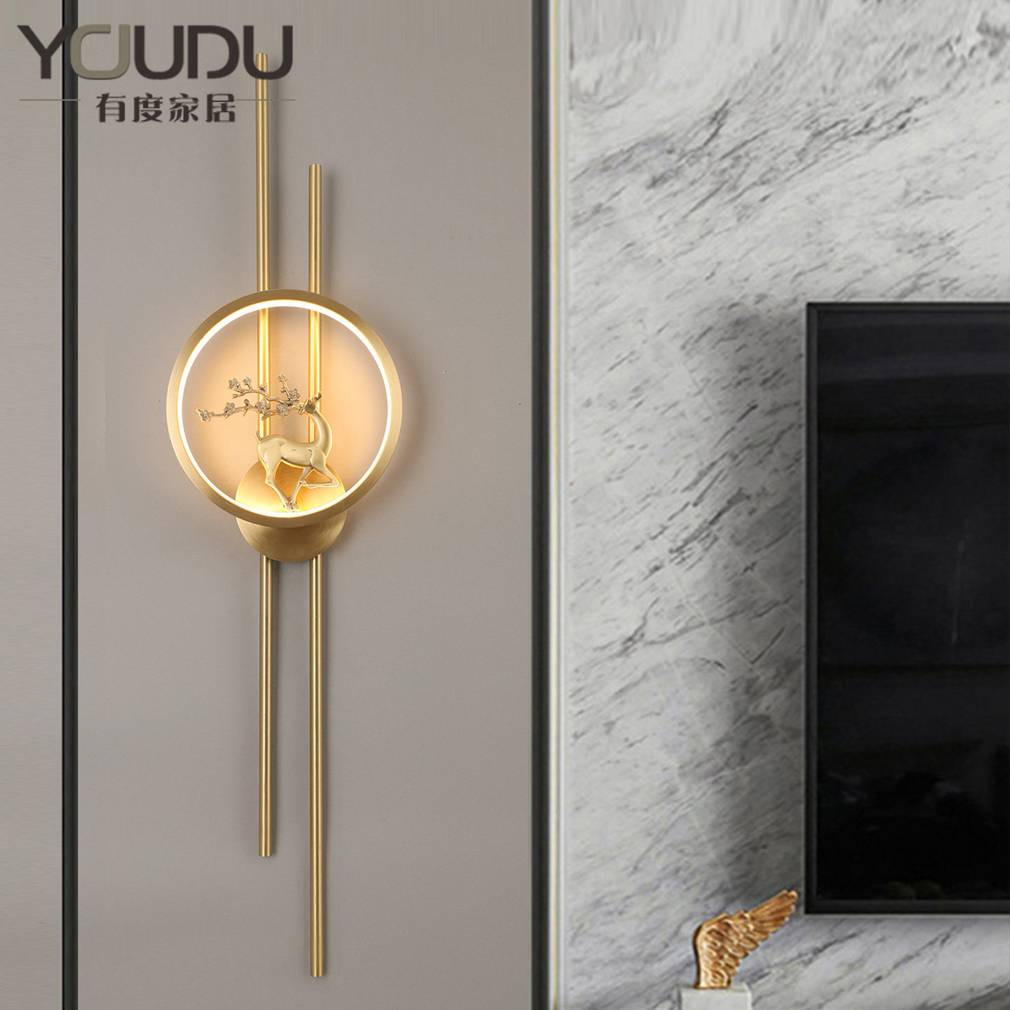 天猫全铜后现代轻奢客厅壁灯格栅电视背景墙灯卧室简约大气装饰壁灯