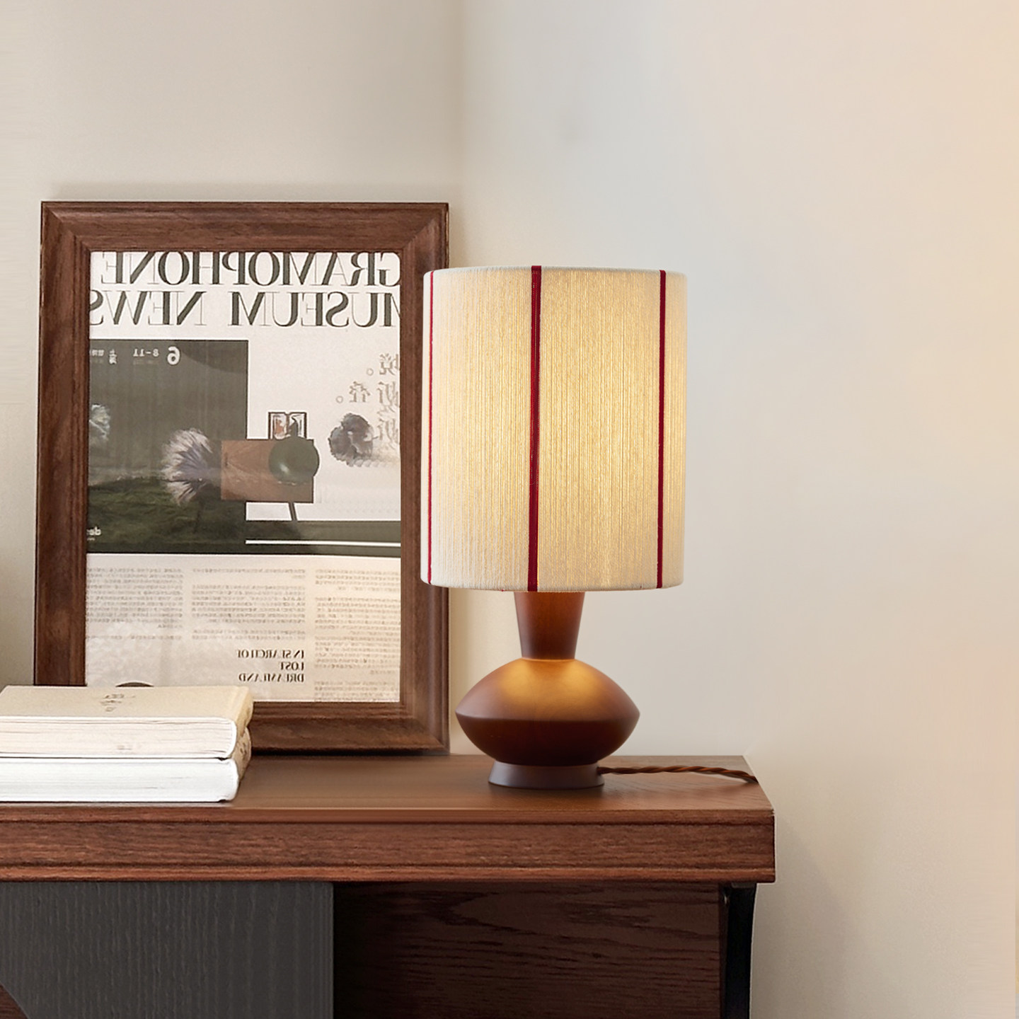 淘宝中古风台灯床头卧室复古卧室书房氛围感侘寂风装饰实木编织小台灯